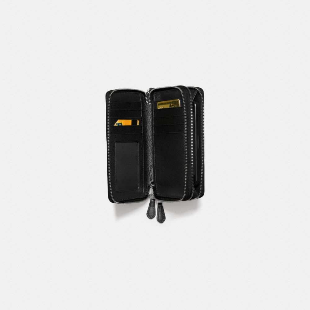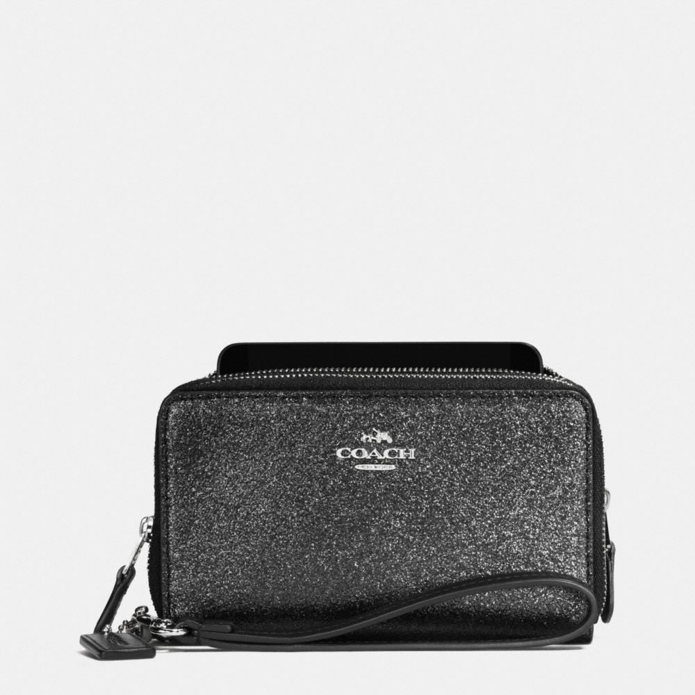 DOUBLE ZIP PHONE WALLET IN GLITTER FABRIC