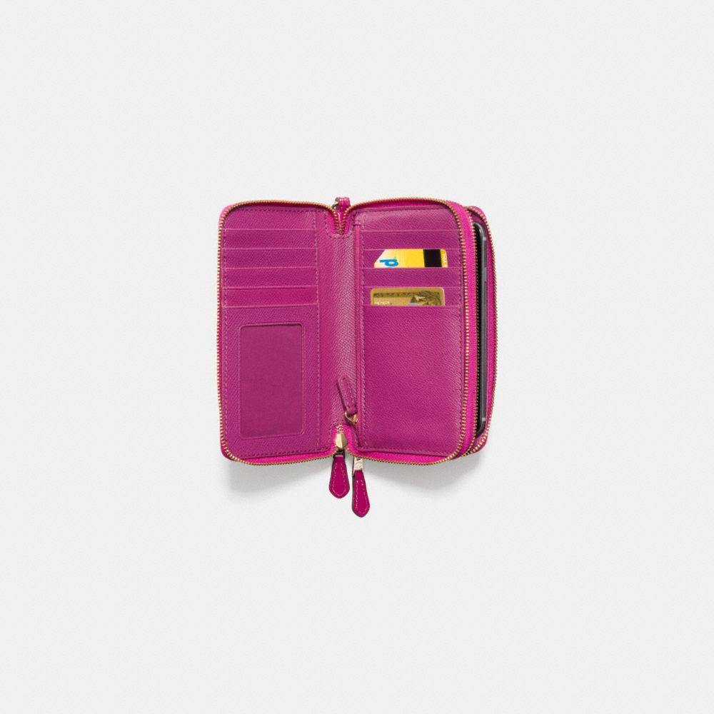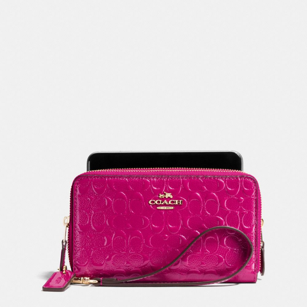 DOUBLE ZIP PHONE WALLET IN SIGNATURE DEBOSSED PATENT LEATHER