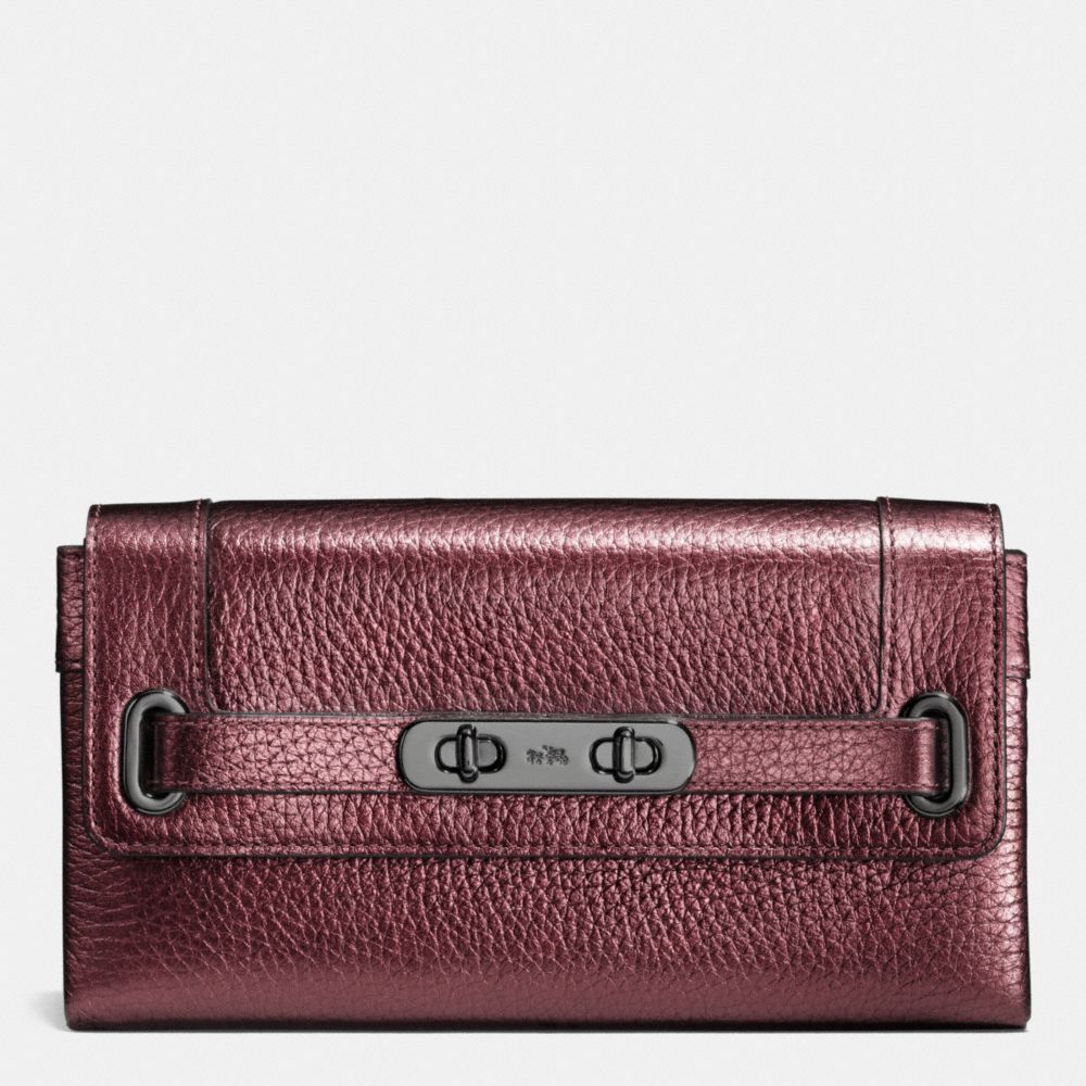 COACH SWAGGER WALLET IN METALLIC PEBBLE LEATHER