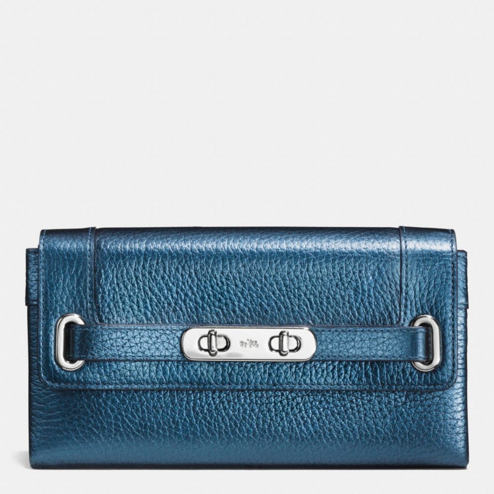 COACH SWAGGER WALLET IN METALLIC PEBBLE LEATHER