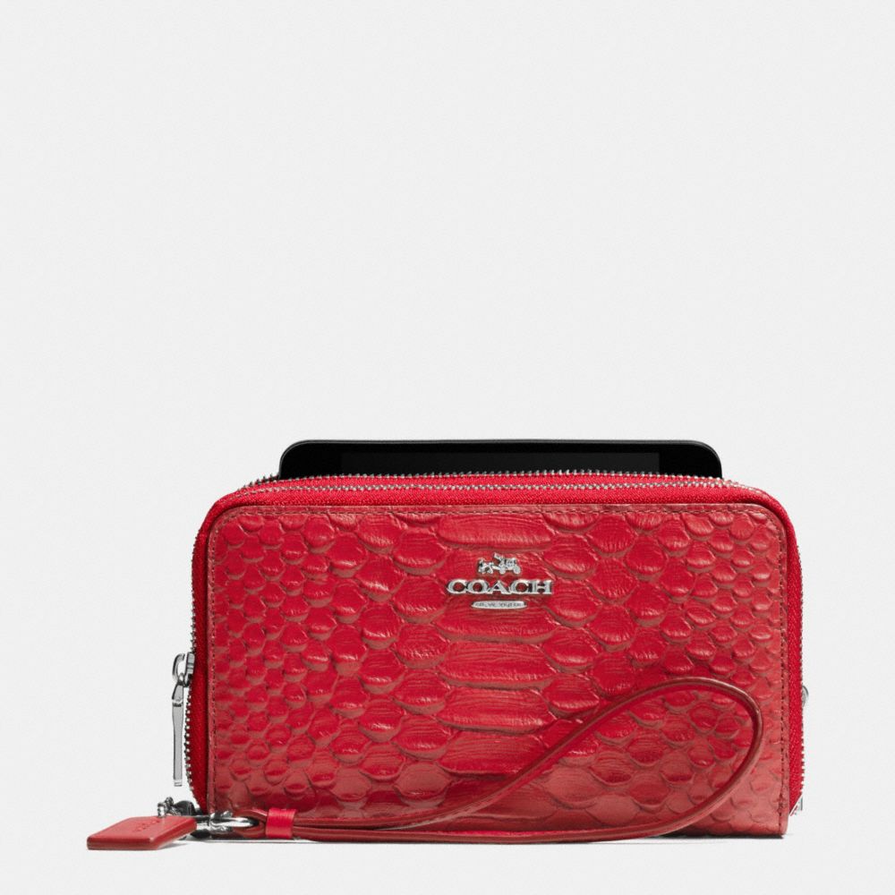 DOUBLE ZIP PHONE WALLET IN SNAKE EMBOSSED LEATHER