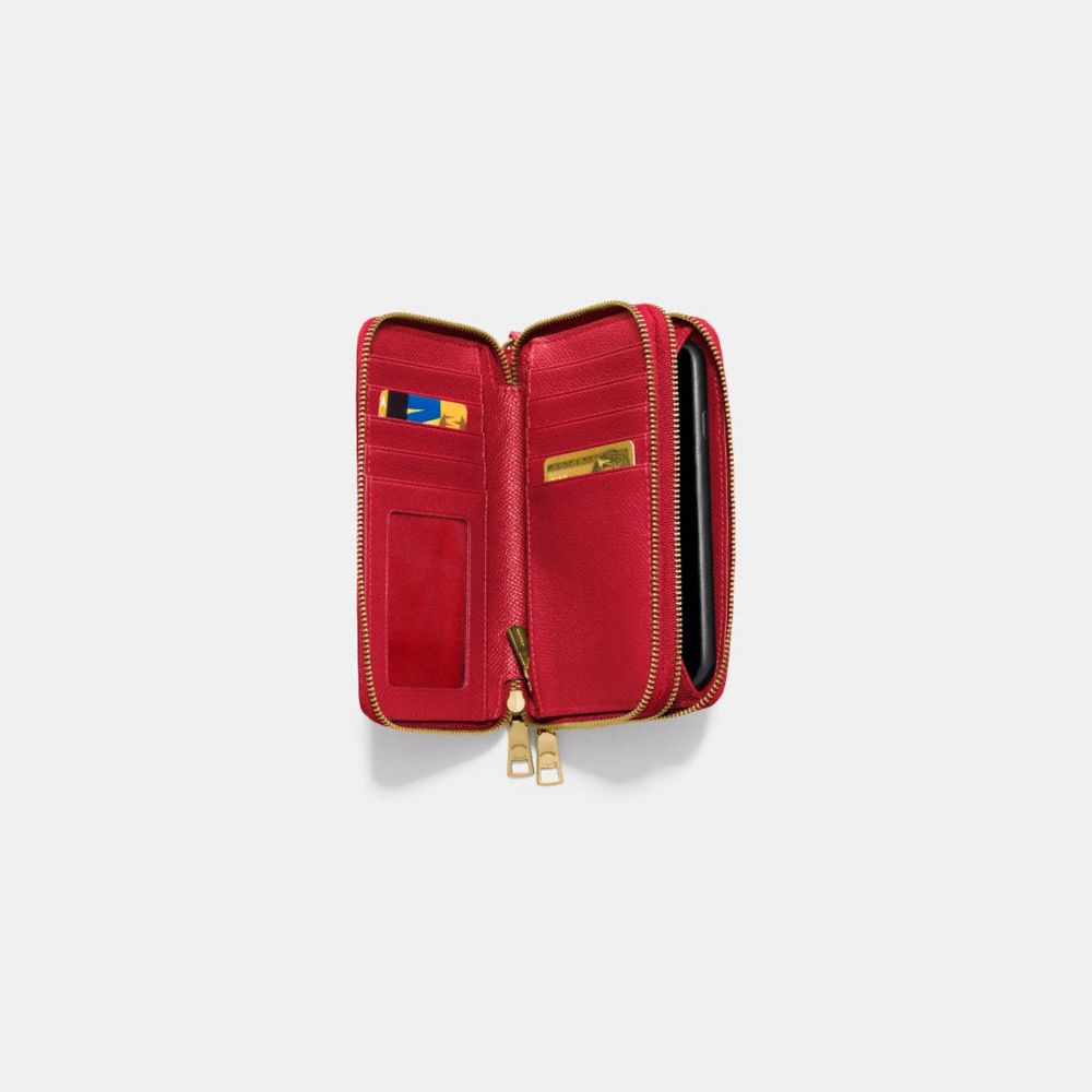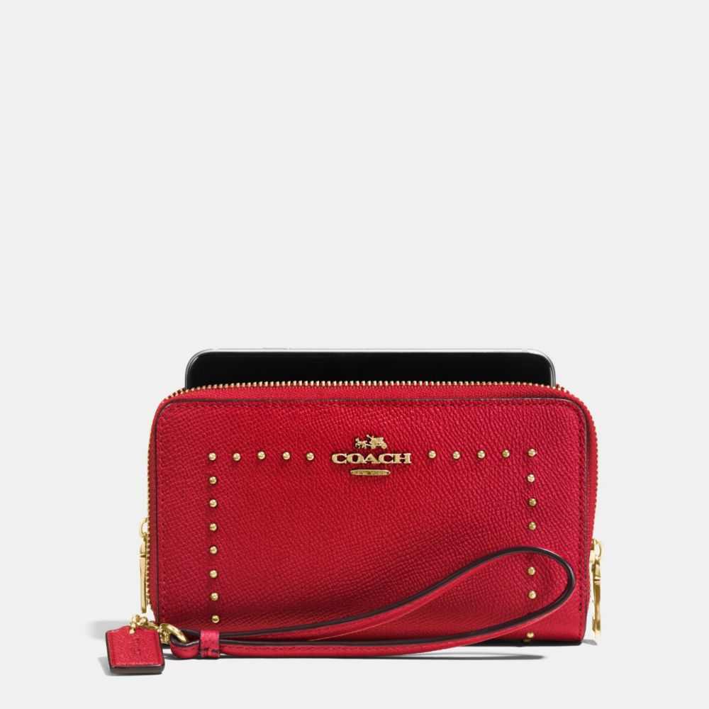 EDGE STUDS DOUBLE ZIP PHONE WALLET IN CROSSGRAIN LEATHER