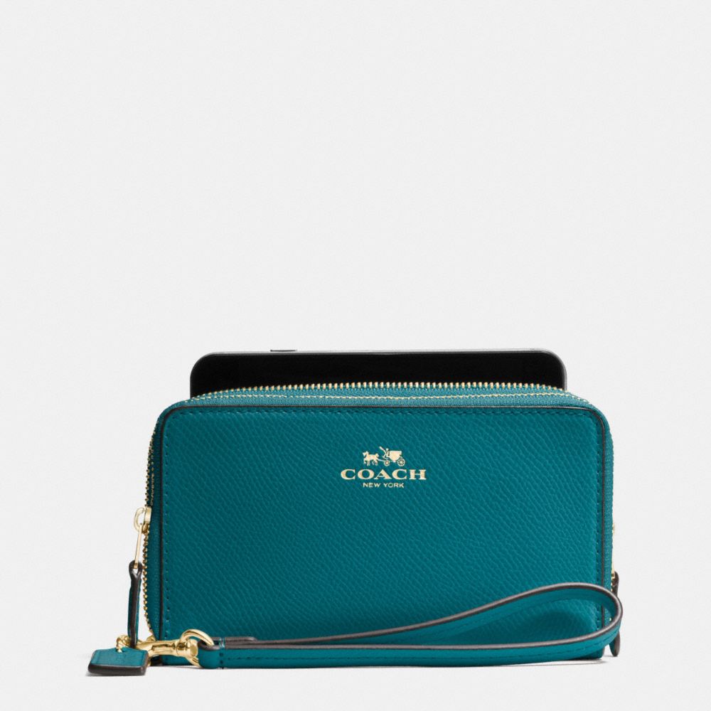 DOUBLE ZIP PHONE WALLET IN CROSSGRAIN LEATHER