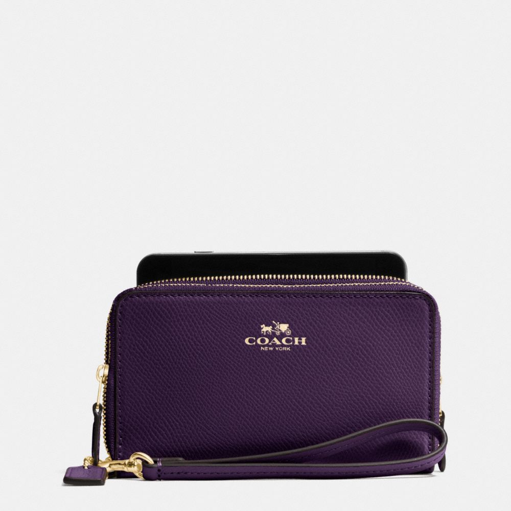 DOUBLE ZIP PHONE WALLET IN CROSSGRAIN LEATHER