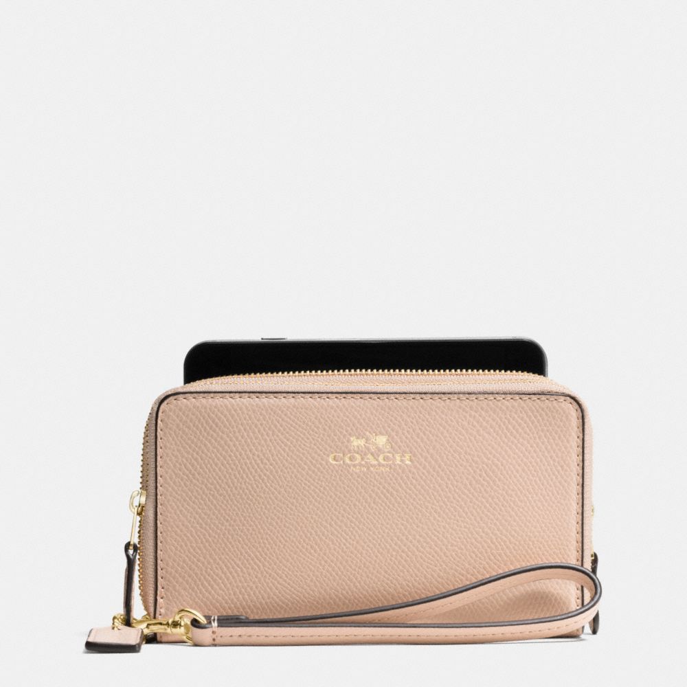DOUBLE ZIP PHONE WALLET IN CROSSGRAIN LEATHER