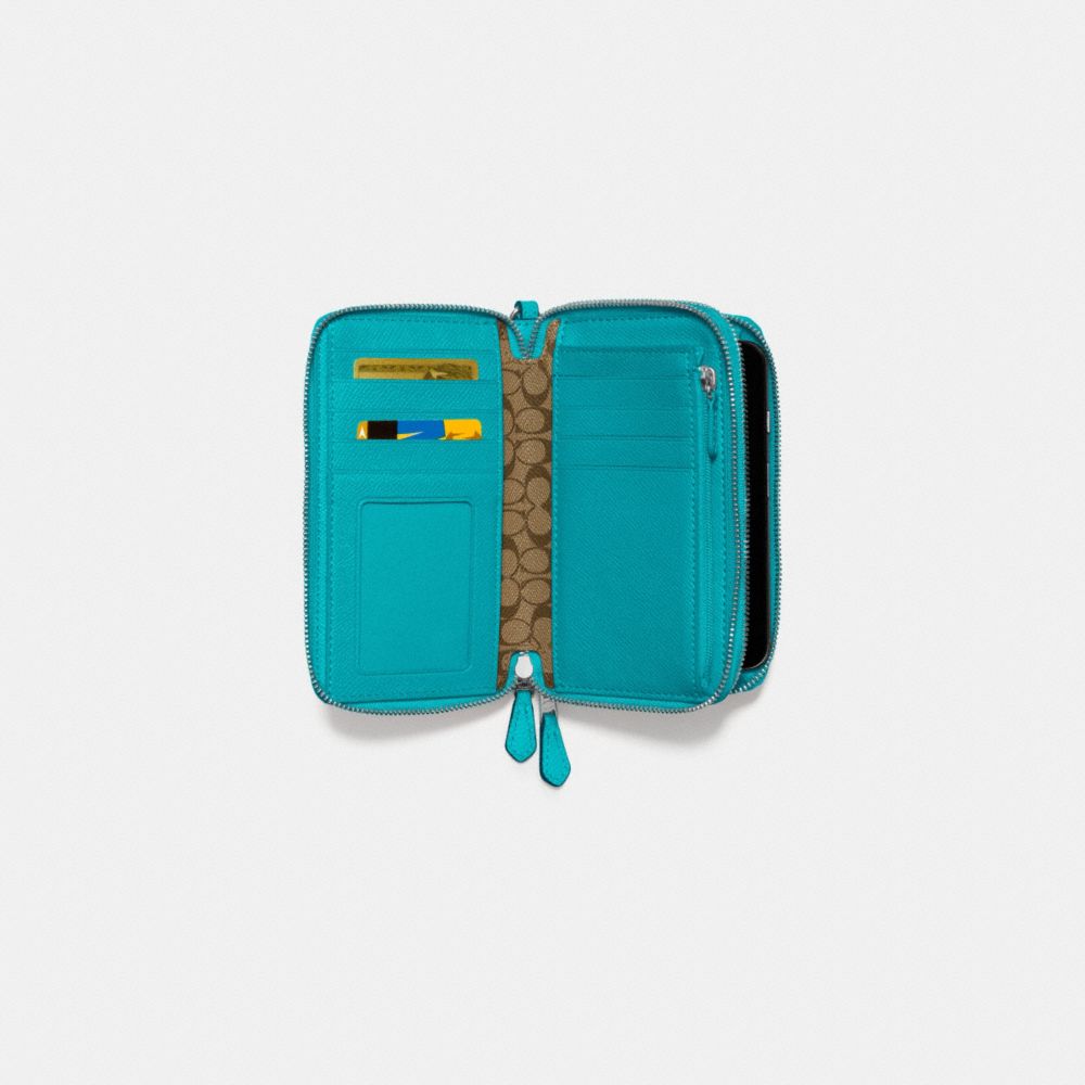 DOUBLE ZIP PHONE WALLET IN CROSSGRAIN LEATHER