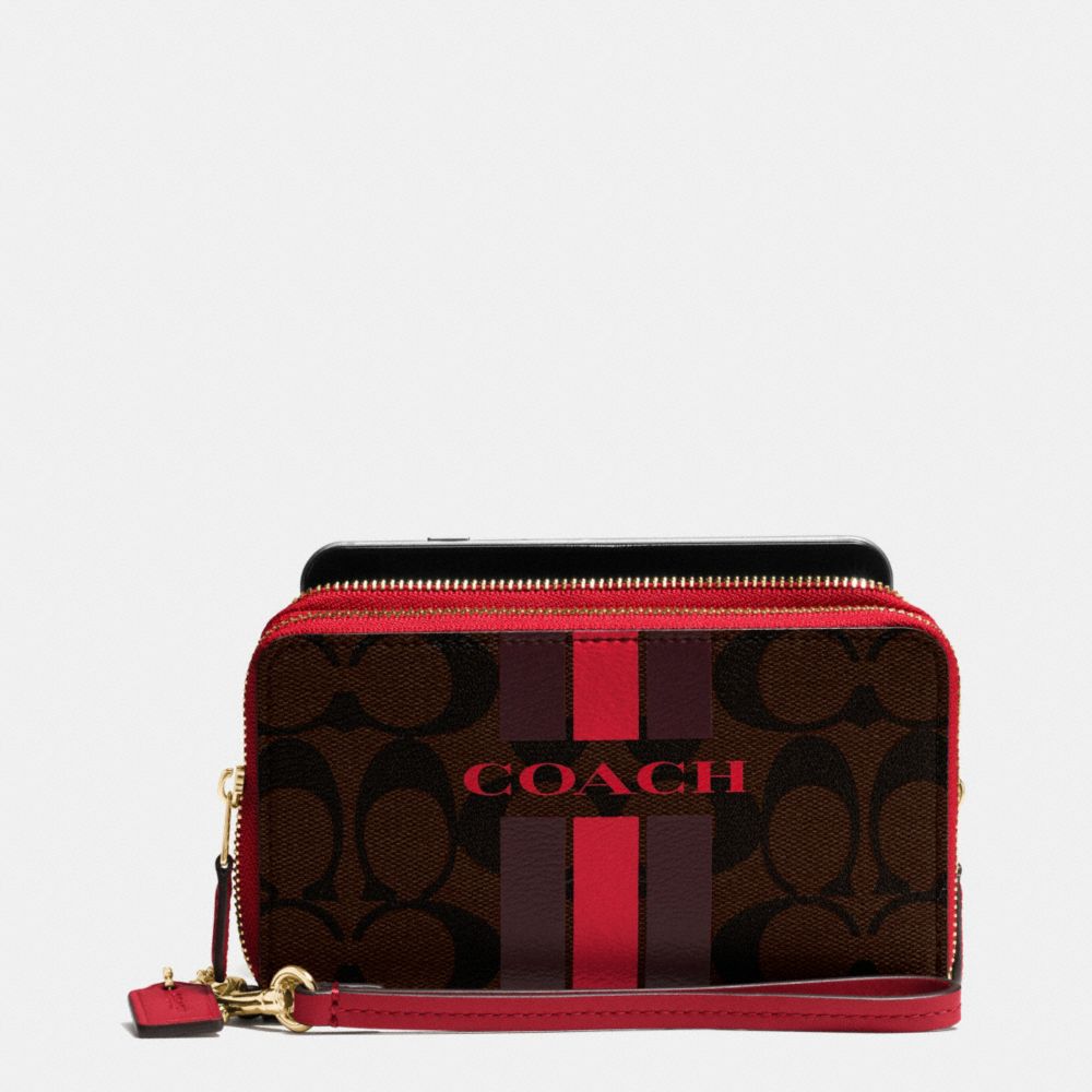 COACH VARSITY STRIPE DOUBLE ZIP PHONE WALLET IN SIGNATURE