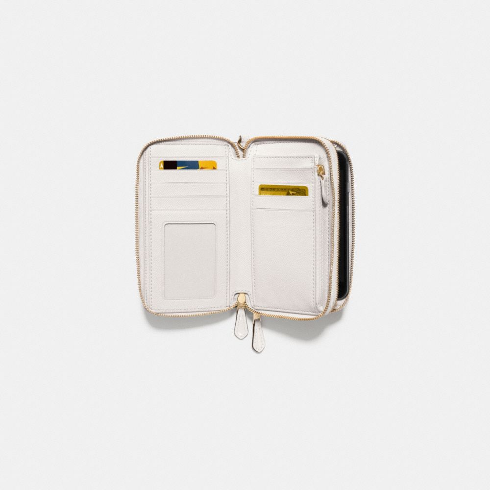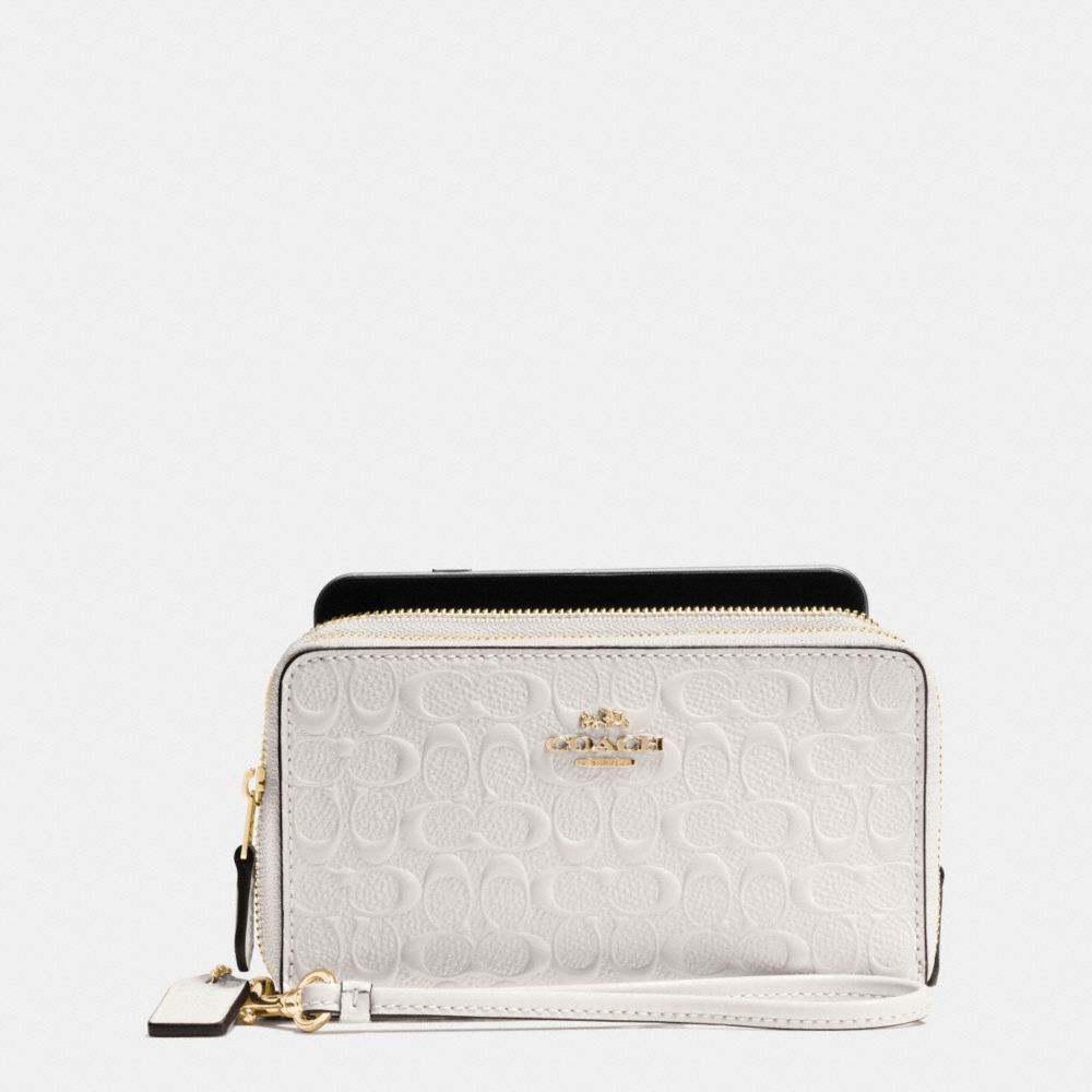 DOUBLE ZIP PHONE WALLET IN SIGNATURE DEBOSSED PATENT LEATHER