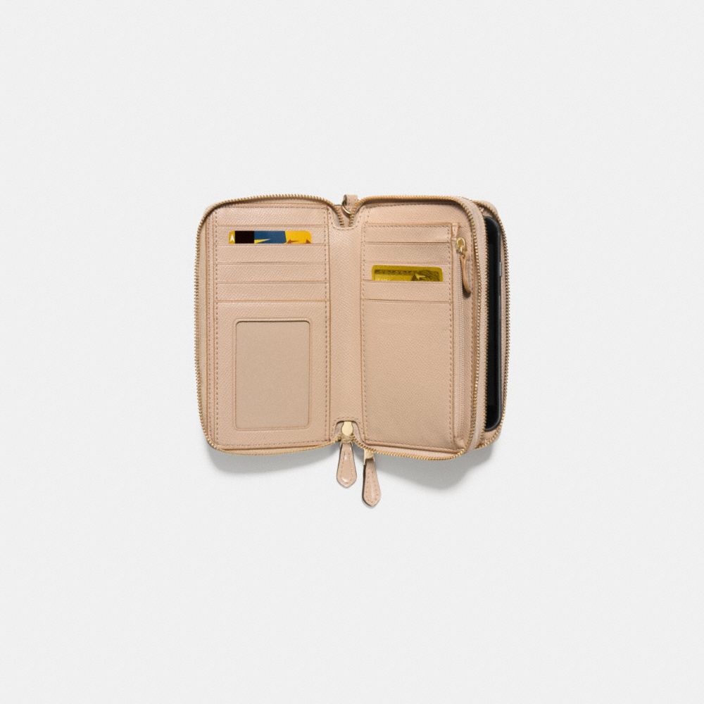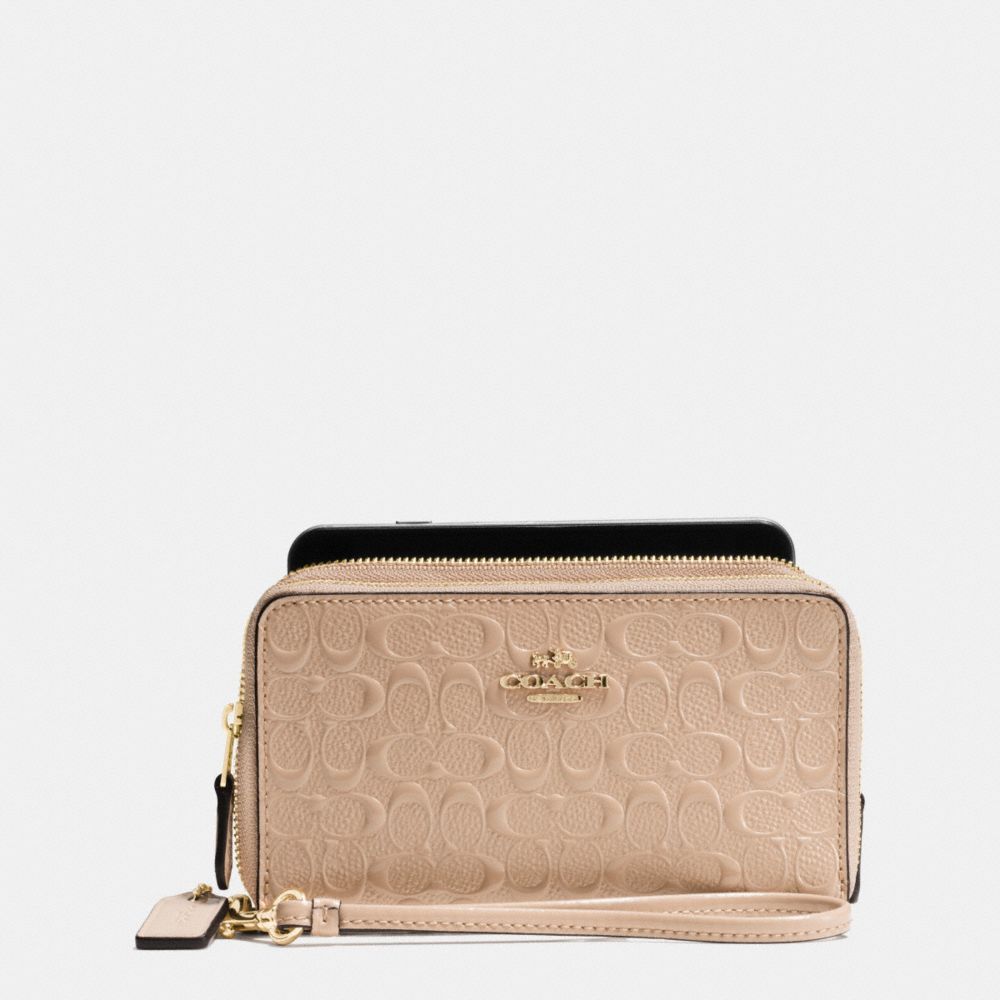 DOUBLE ZIP PHONE WALLET IN SIGNATURE DEBOSSED PATENT LEATHER
