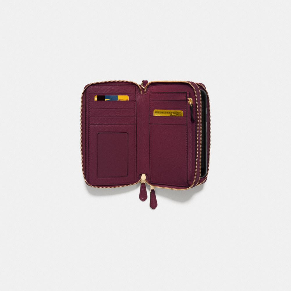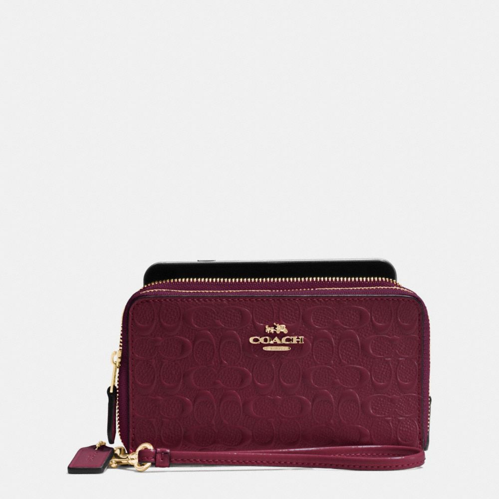 DOUBLE ZIP PHONE WALLET IN SIGNATURE DEBOSSED PATENT LEATHER