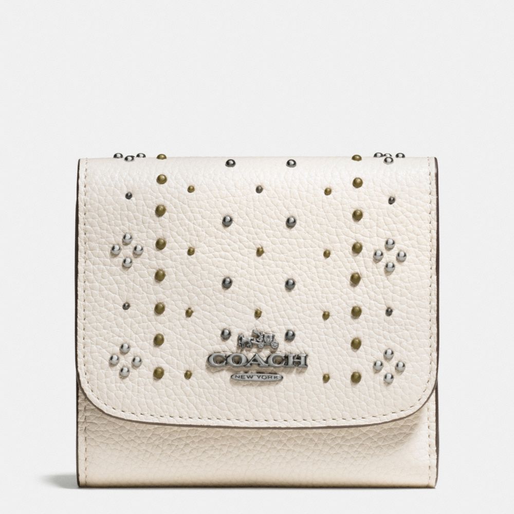 SMALL WALLET IN POLISHED PEBBLE LEATHER WITH BANDANA RIVETS