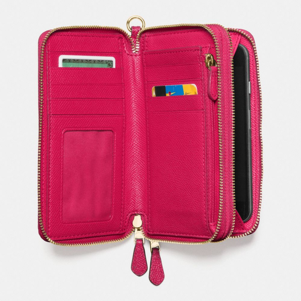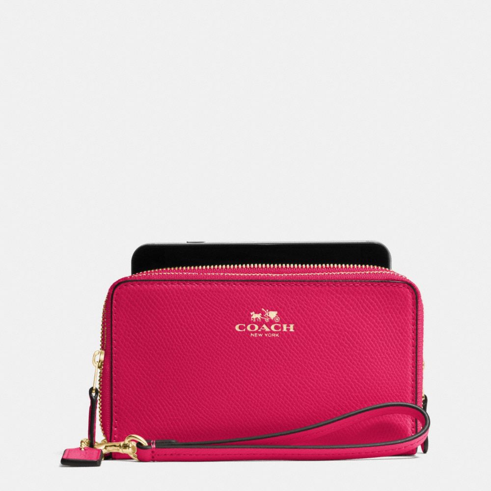 DOUBLE ZIP PHONE WALLET IN CROSSGRAIN LEATHER