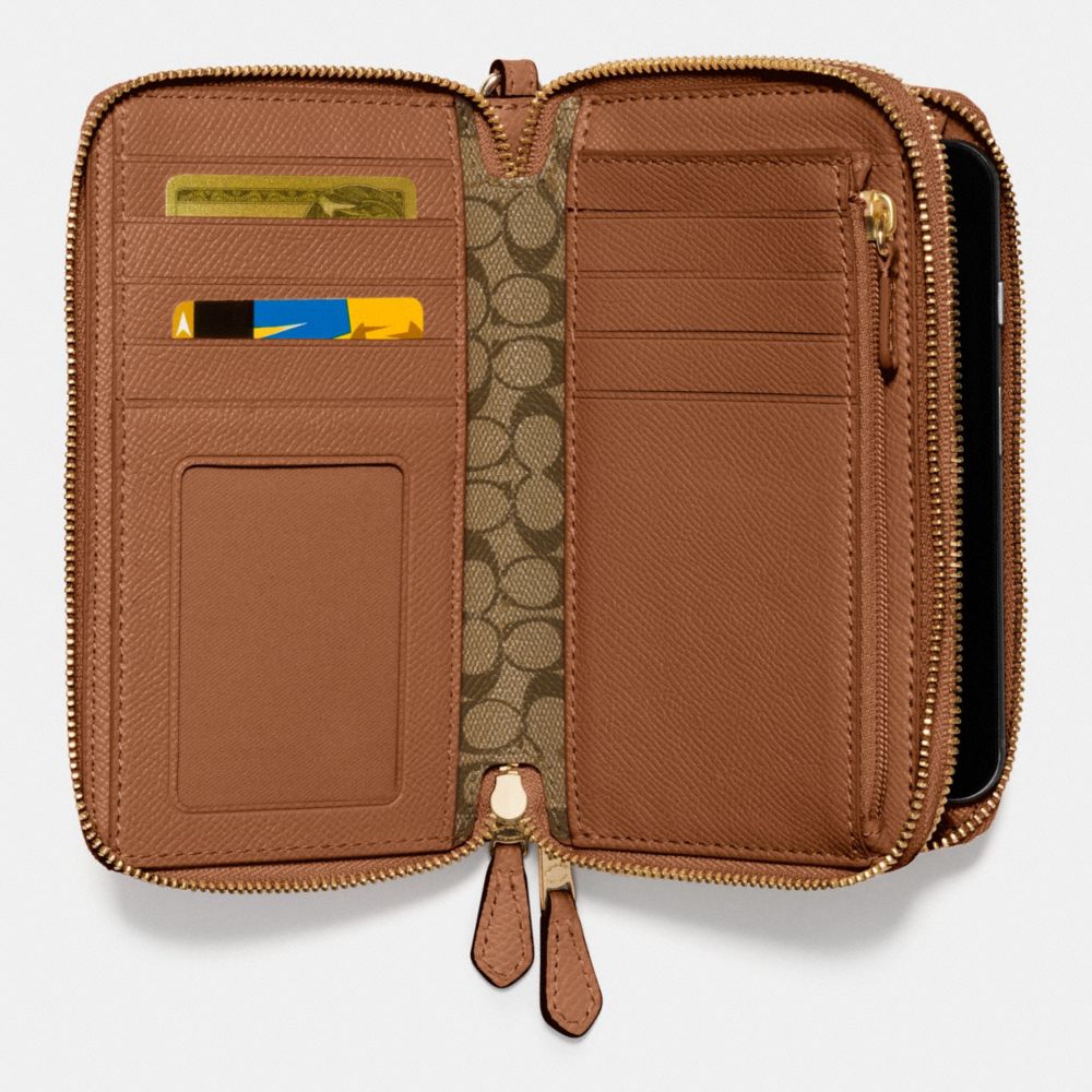 DOUBLE ZIP PHONE WALLET IN CROSSGRAIN LEATHER