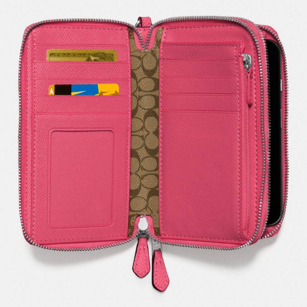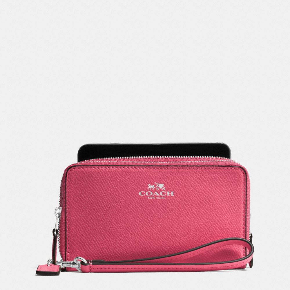 DOUBLE ZIP PHONE WALLET IN CROSSGRAIN LEATHER