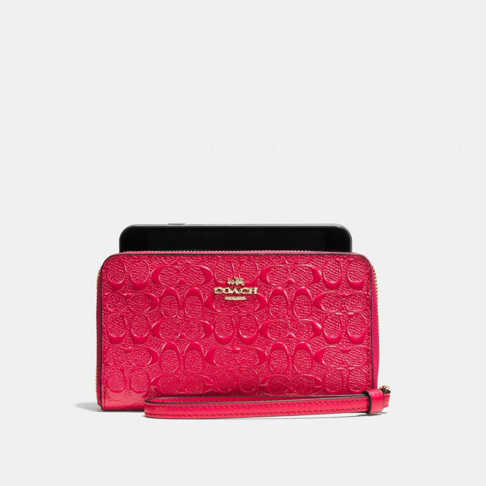 PHONE WALLET IN SIGNATURE DEBOSSED PATENT LEATHER