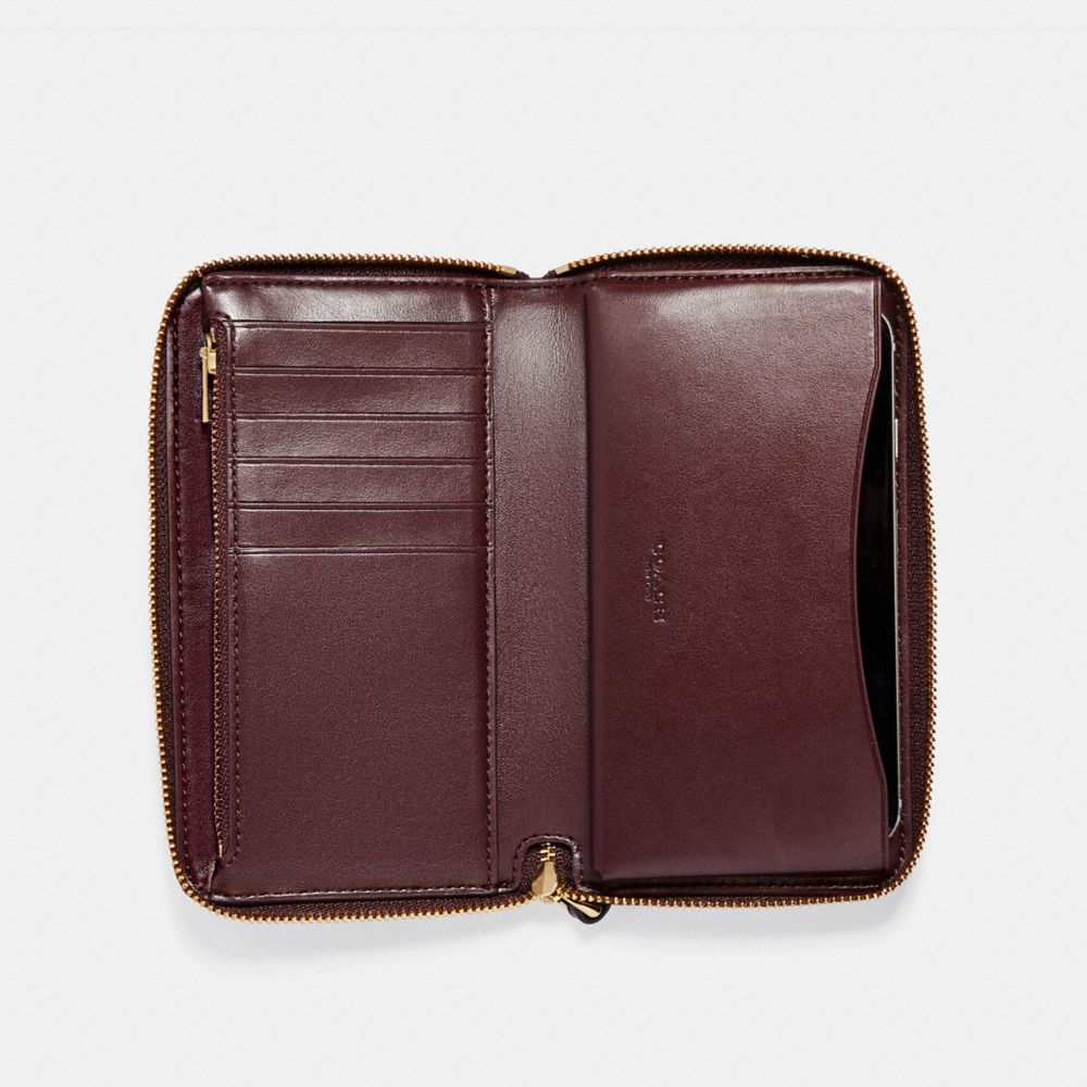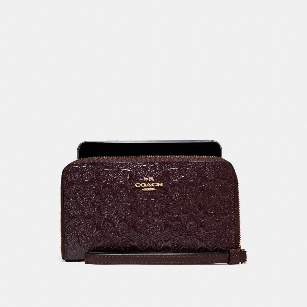PHONE WALLET IN SIGNATURE DEBOSSED PATENT LEATHER