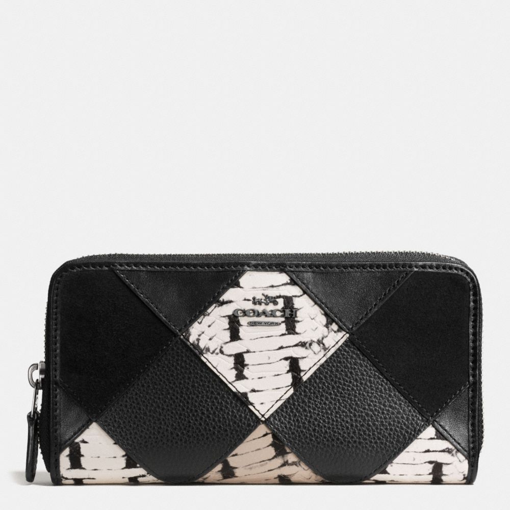 ACCORDION ZIP WALLET WITH SNAKE EMBOSSED PATCHWORK