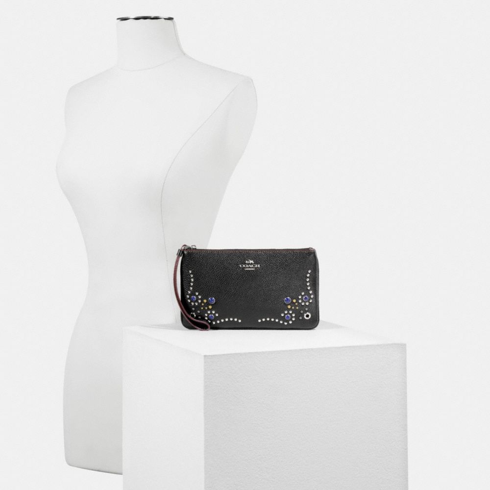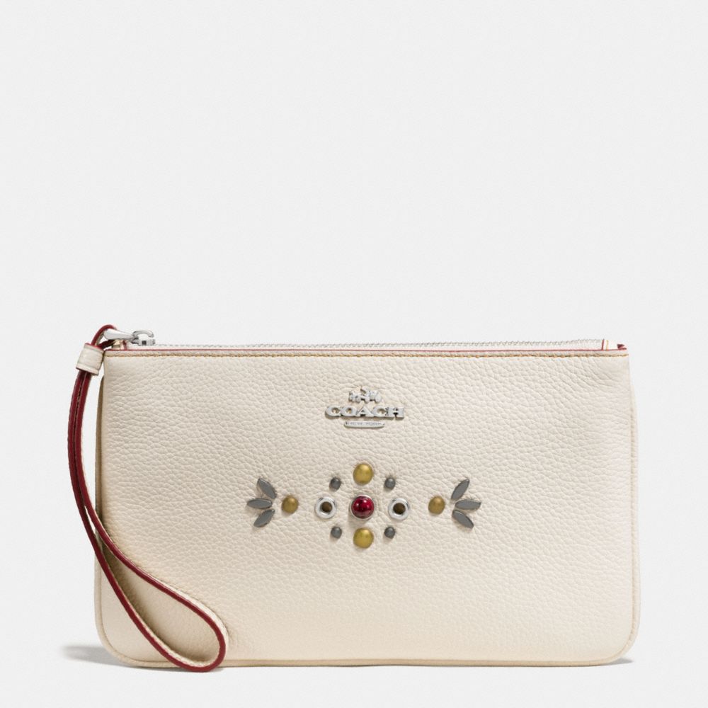 LARGE WRISTLET IN PEBBLE LEATHER WITH BORDER STUDDED EMBELLISHMENT