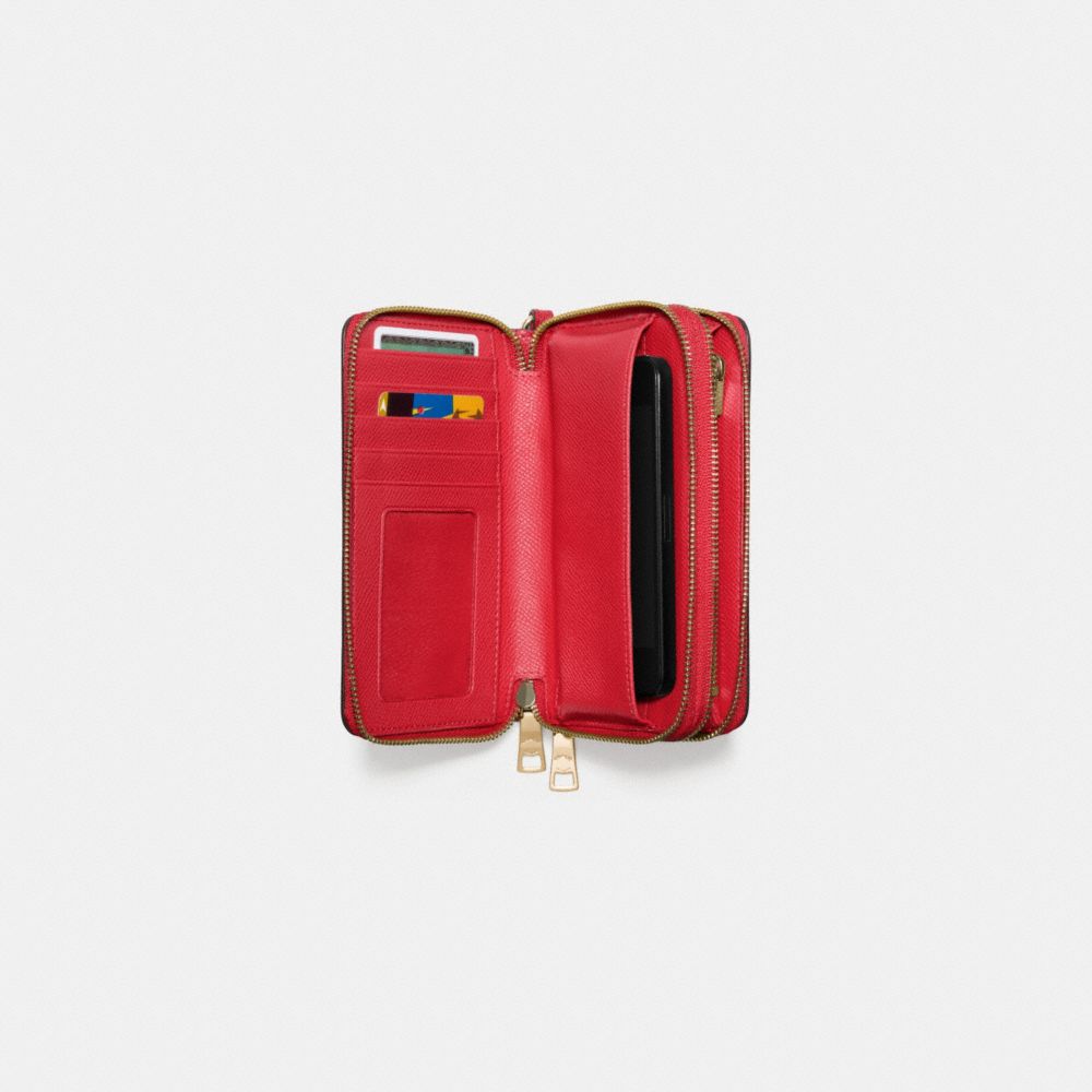 DOUBLE ZIP PHONE WALLET IN EMBOSSED TEXTURED LEATHER