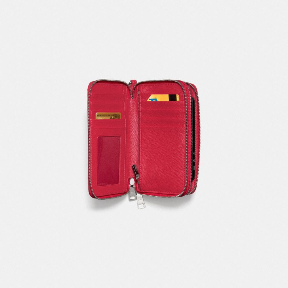 DOUBLE ZIP PHONE WALLET IN EMBOSSED TEXTURED LEATHER