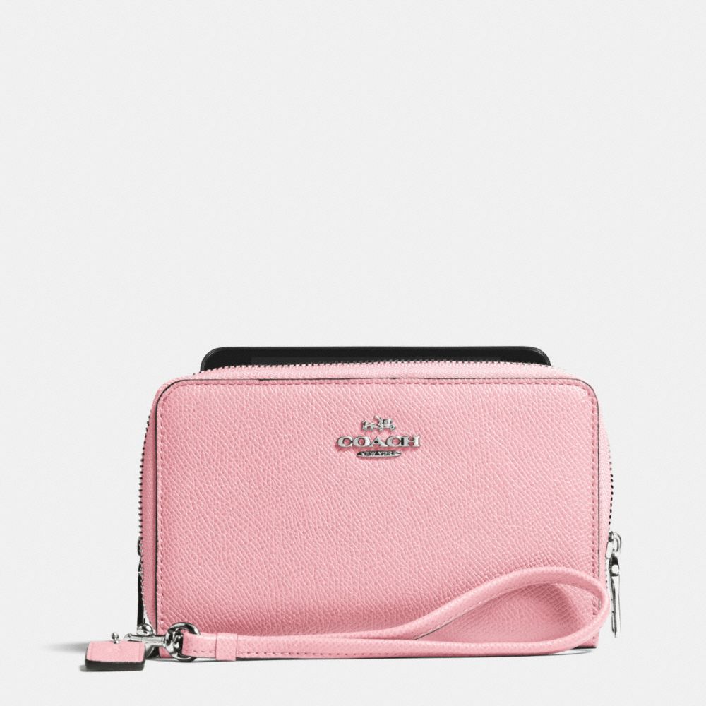 DOUBLE ZIP PHONE WALLET IN EMBOSSED TEXTURED LEATHER
