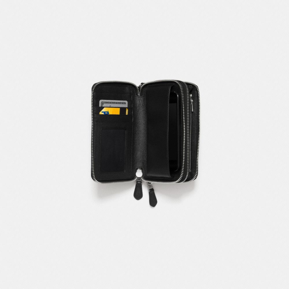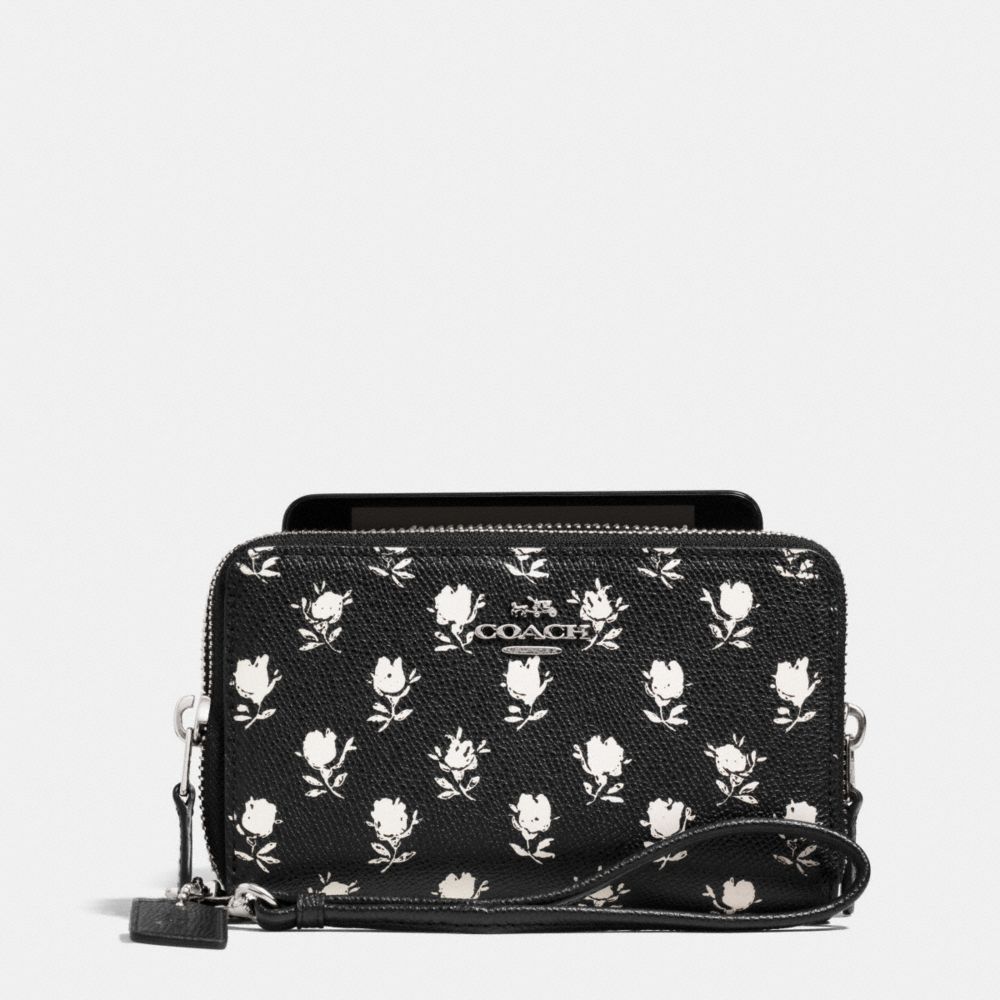 DOUBLE ZIP PHONE WALLET IN PRINTED CROSSGRAIN LEATHER