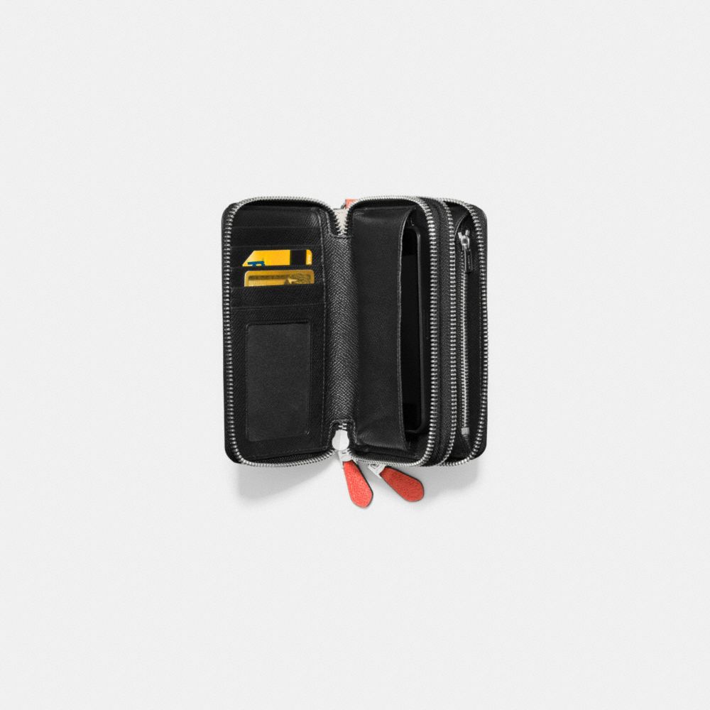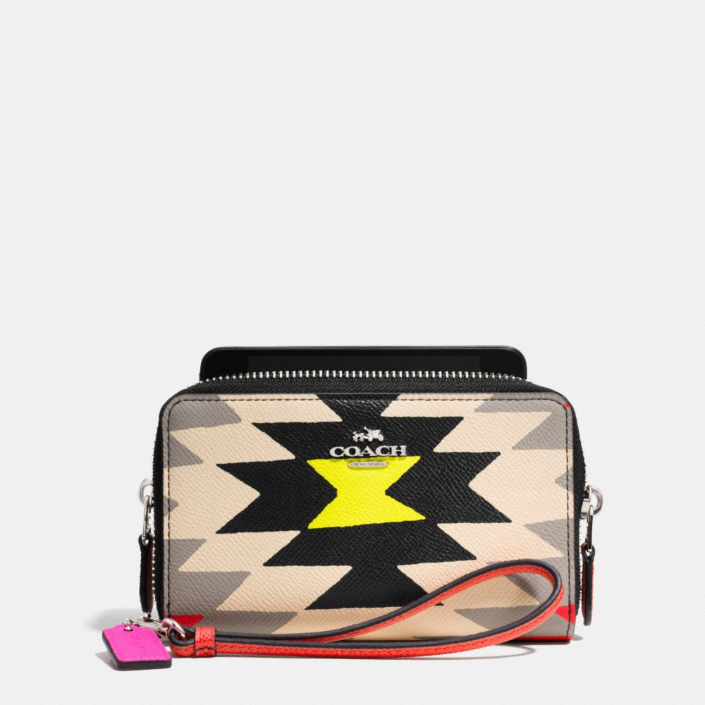 DOUBLE ZIP PHONE WALLET IN PRINTED CROSSGRAIN LEATHER