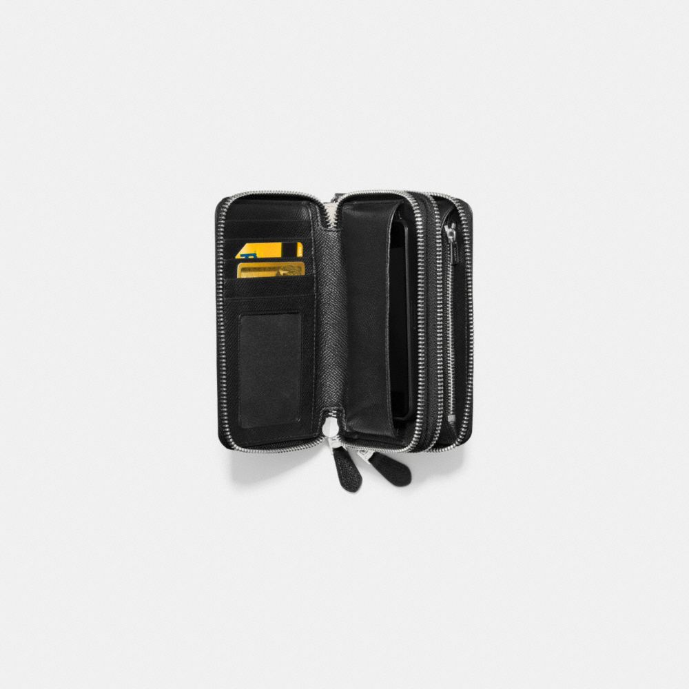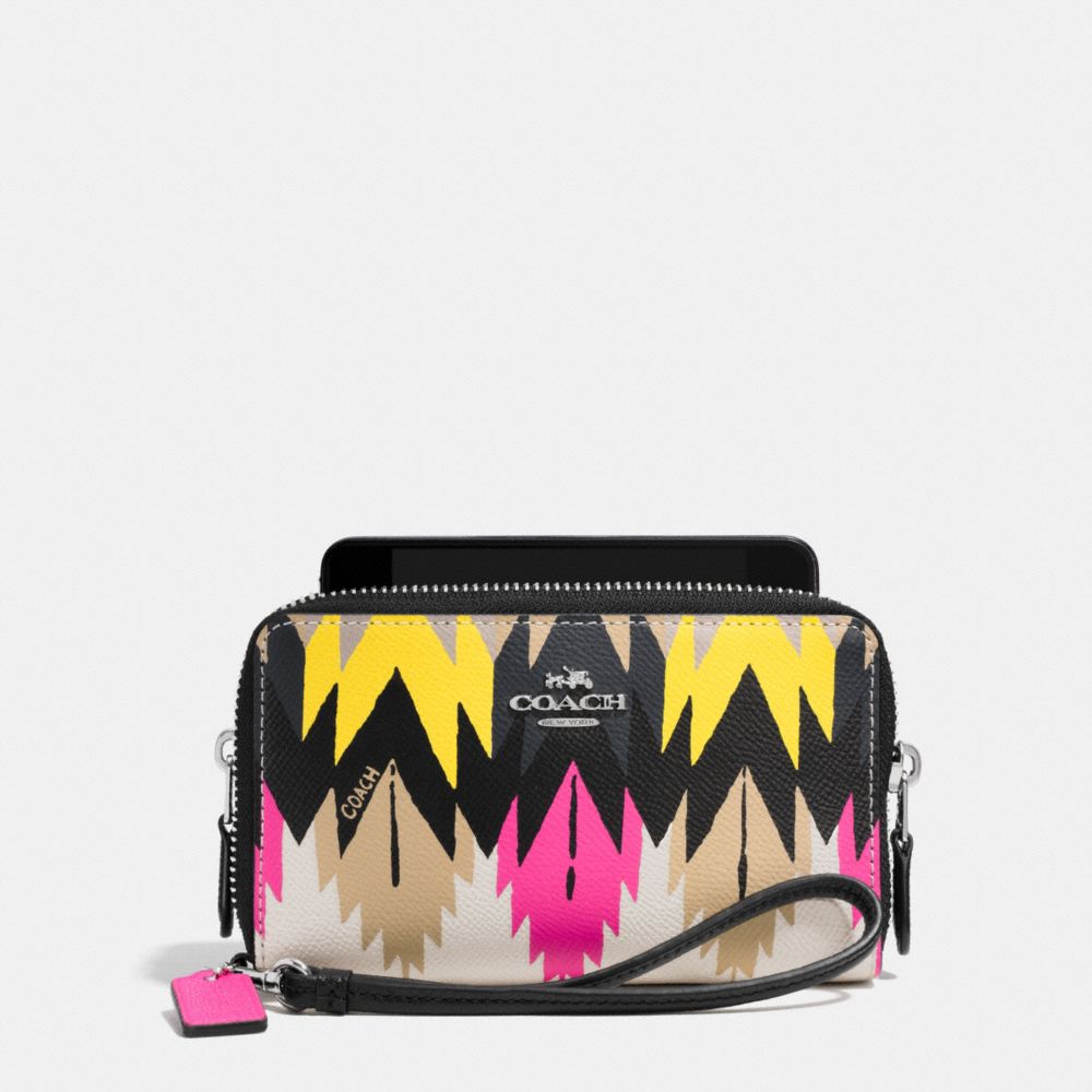 DOUBLE ZIP PHONE WALLET IN PRINTED CROSSGRAIN LEATHER