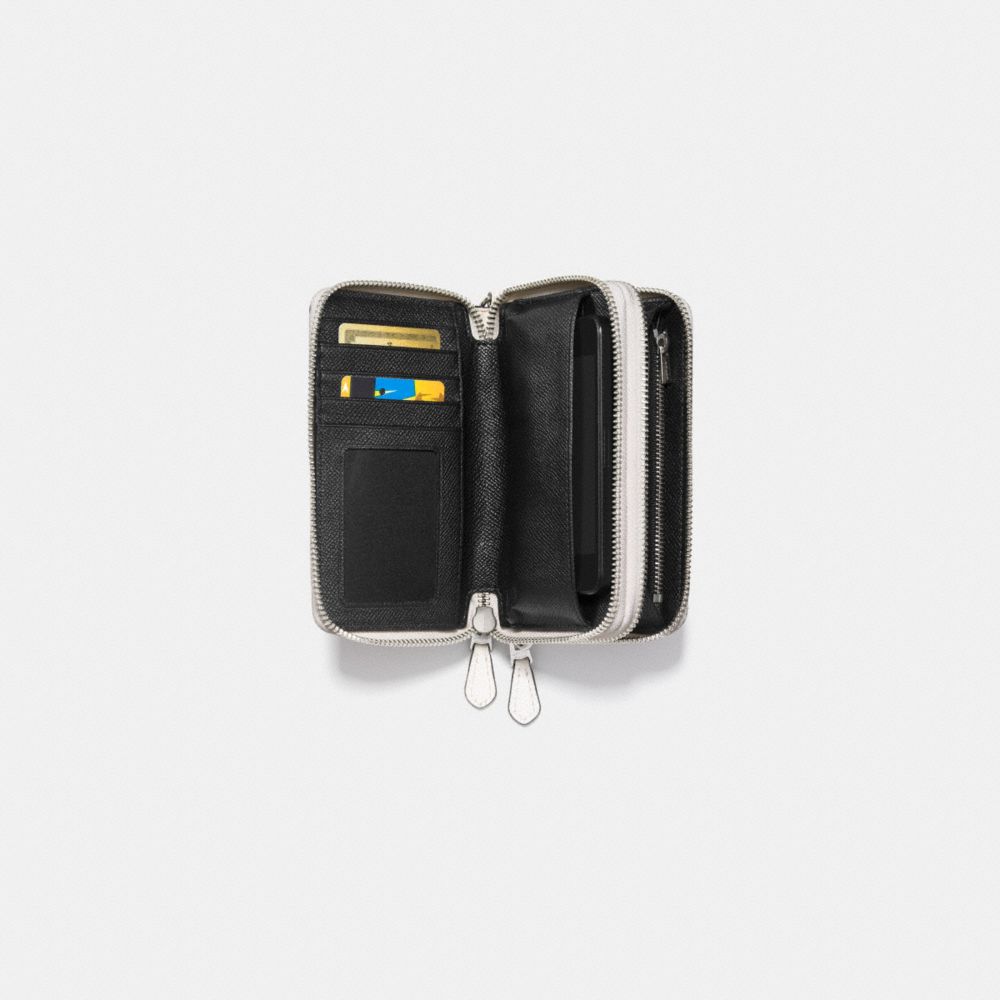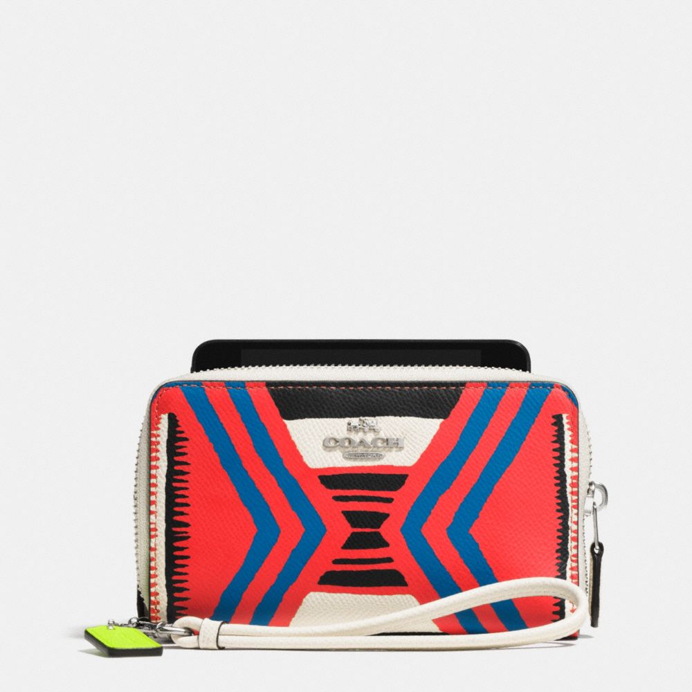 DOUBLE ZIP PHONE WALLET IN PRINTED CROSSGRAIN LEATHER