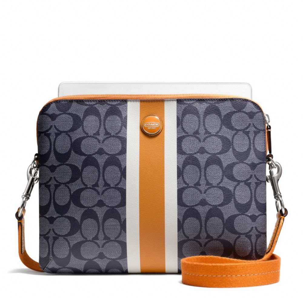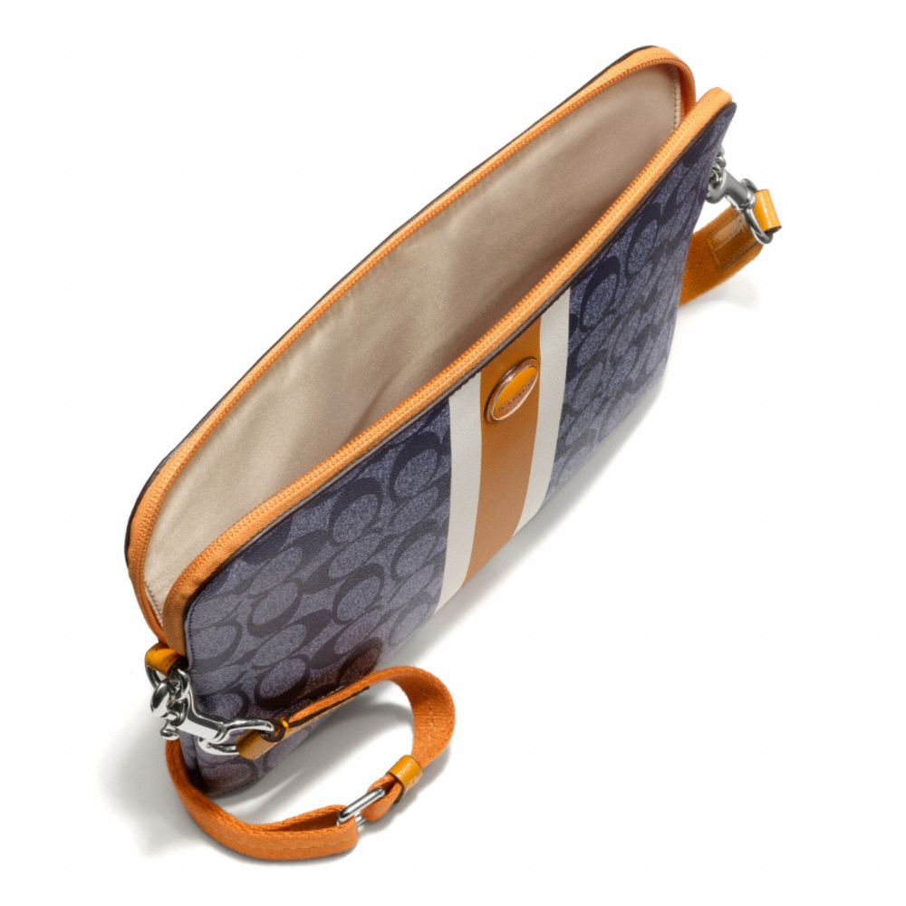 SIGNATURE STRIPE PVC STRIPE TABLET CROSSBODY