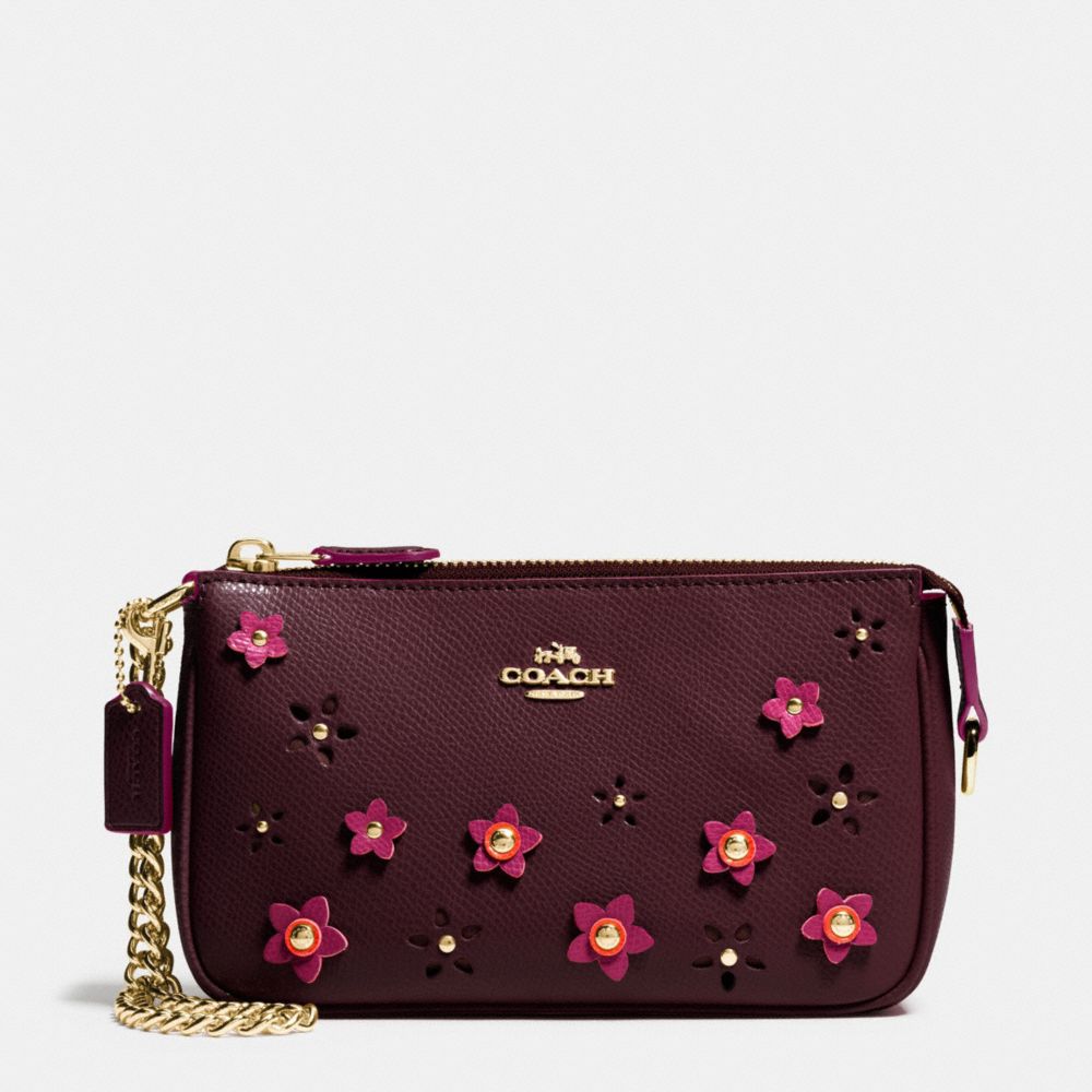 LARGE WRISTLET 19 IN FLORAL APPLIQUE LEATHER