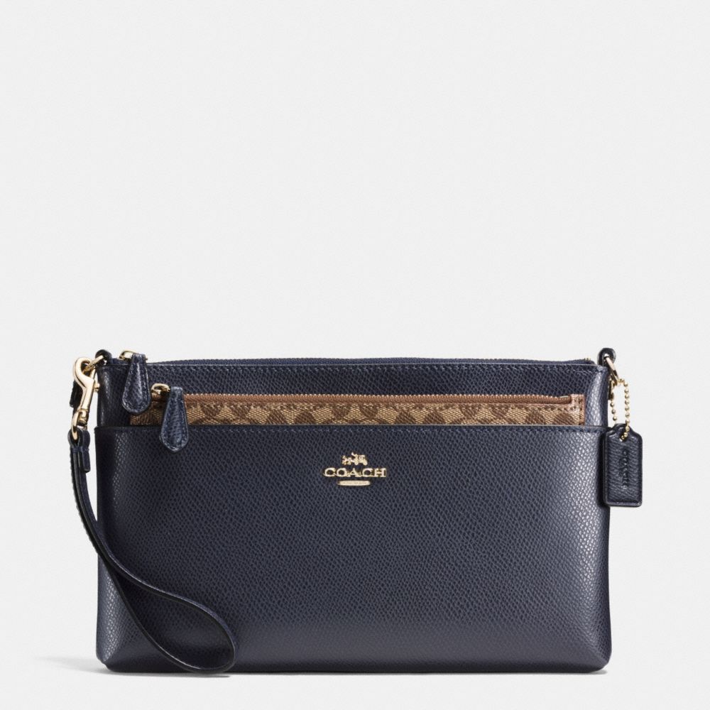 WRISTLET WITH POP UP POUCH IN CROSSGRAIN LEATHER