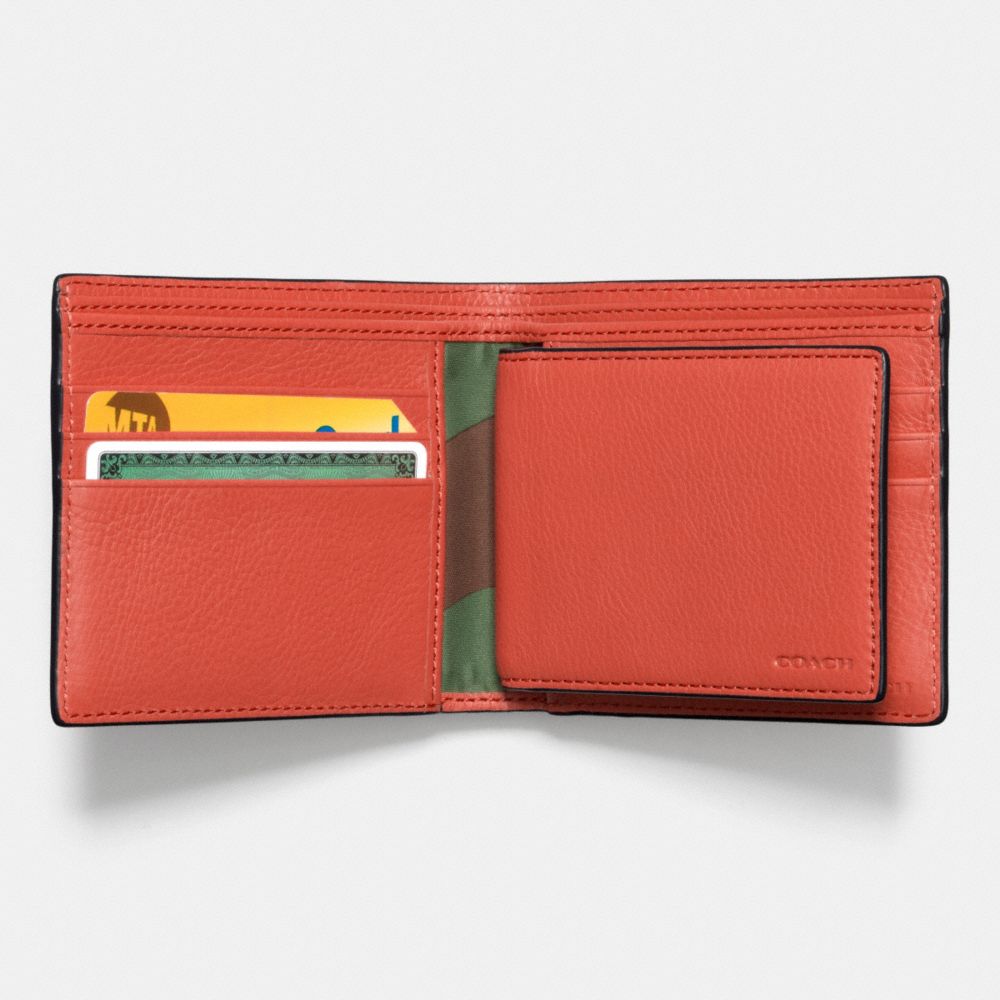 Details| | | Leather| Credit card and multifunction pockets| Two full-length bill compartments| Removable ID passcase| 3 3/4" (L) x 3" (H)