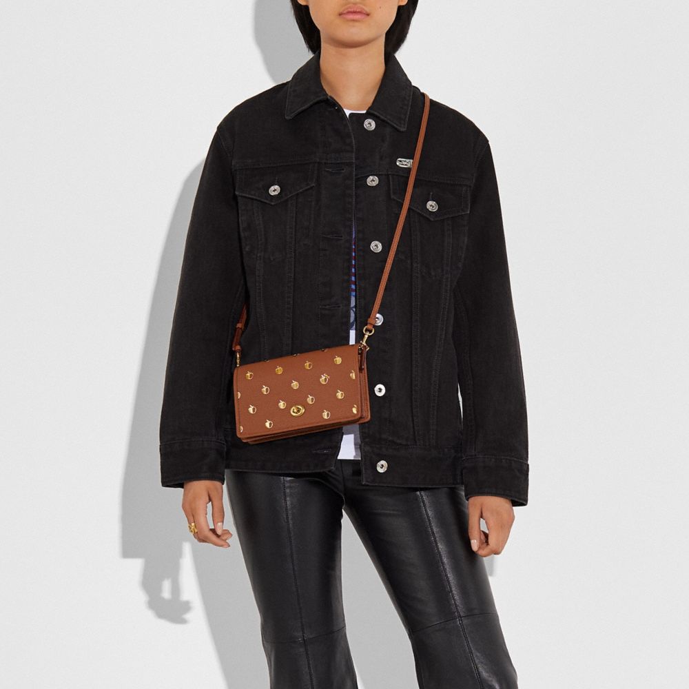 HAYDEN FOLDOVER CROSSBODY CLUTCH WITH APPLE PRINT