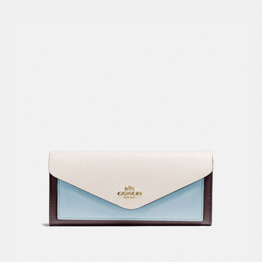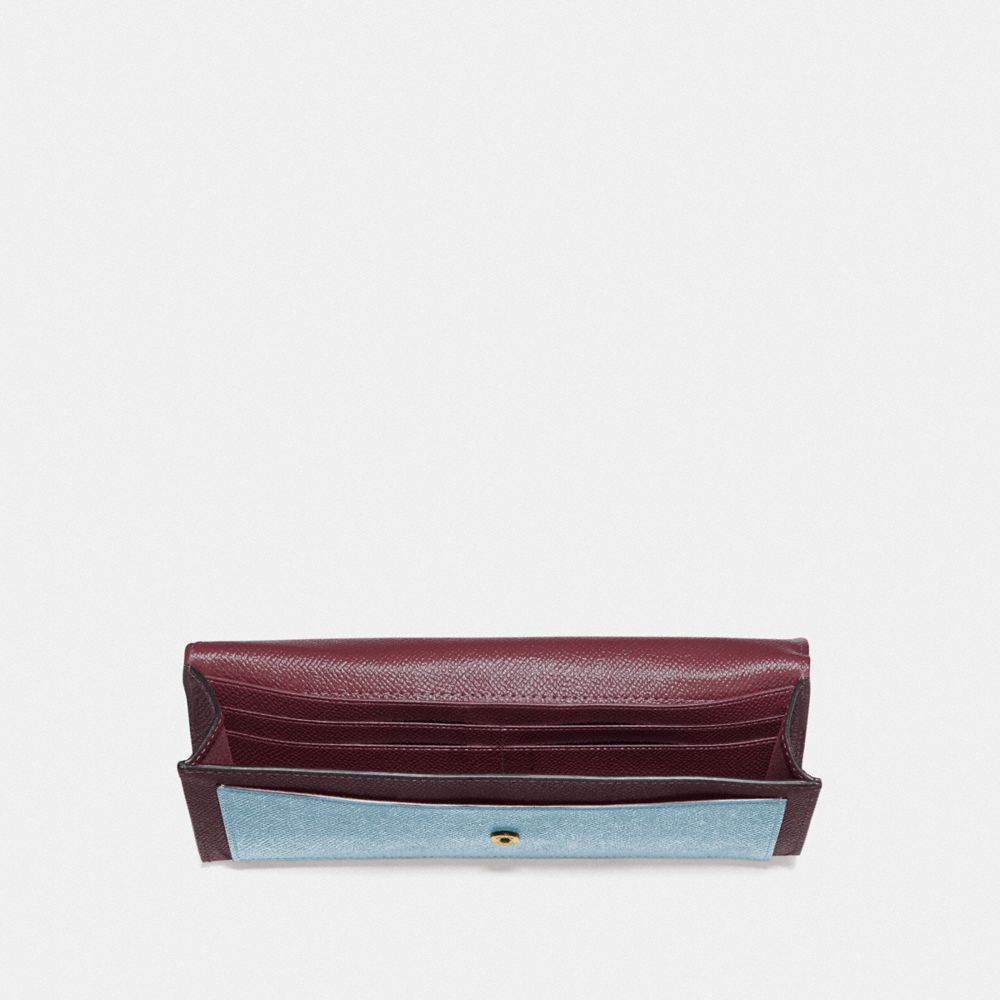 Crossgrain leather| Eight credit card slots| Full-length bill compartment| Snap closure| Outside zip coin pocket| 7 3/4" (L) x 3 1/2" (H)