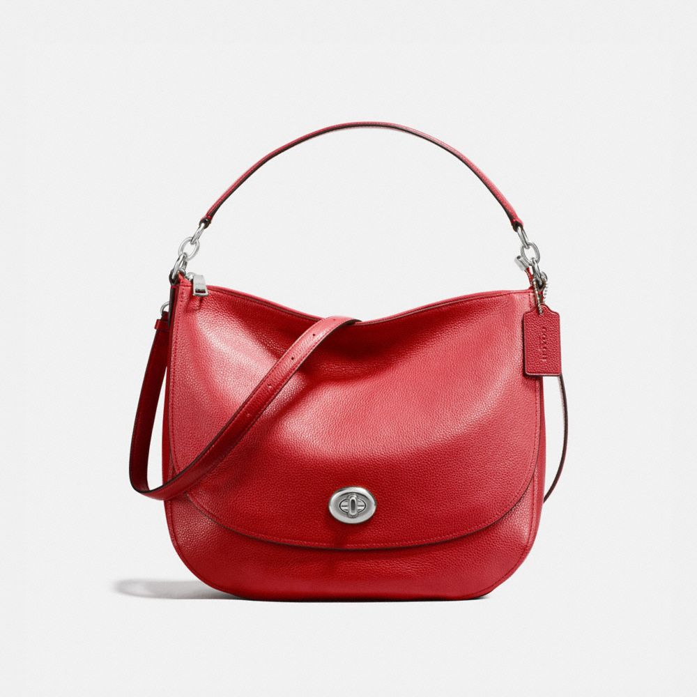 Polished pebble leather| Inside zip, cell phone and multifunction pockets| Zip-top closure, fabric lining| Handle with 10 1/2" drop| Outside turnlock pocket| Detachable strap with 22 1/2" drop for shoulder or crossbody wear| 13" (L) x 11 1/2" (H) x 3 3/4" (W)