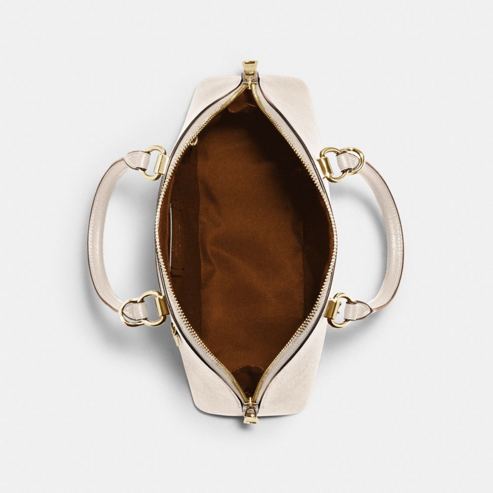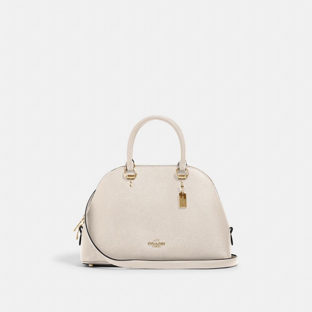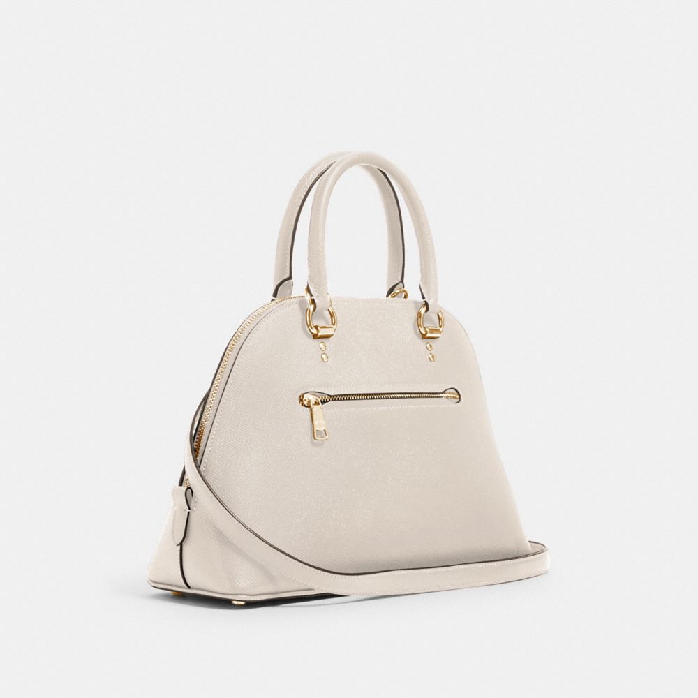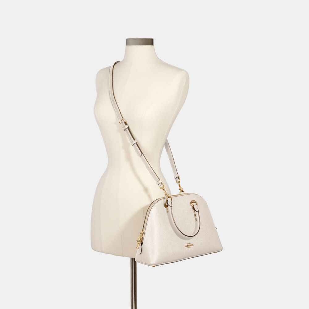 Crossgrain leather| Inside zip pocket| Zip closure, fabric lining| Handles with 3 3/4" drop| Outside zip pocket| Detachable strap with 22" drop for shoulder or crossbody wear| 11 3/4" (L) x 7 3/4" (H) x 4" (W)