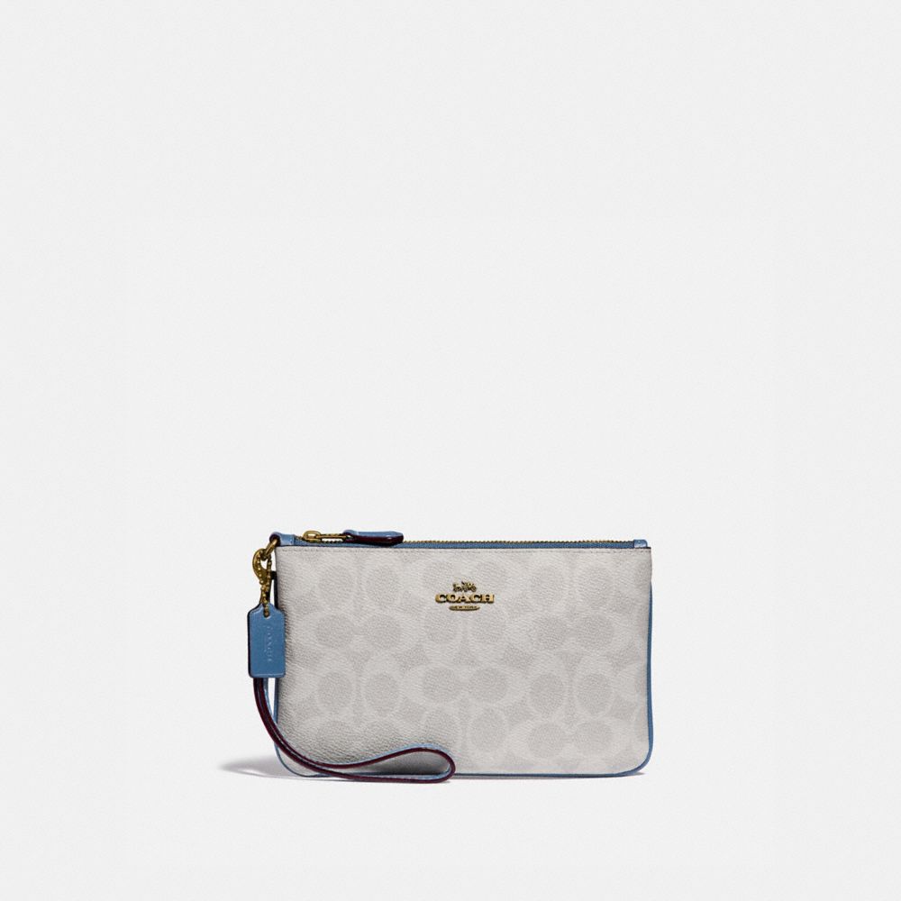 Signature coated canvas with refined calf leather details| Two credit card slots| Zip-top closure, fabric lining| Detachable wrist strap| 7 1/2" (L) x 4 3/4" (H)| Fits an iPhone or AndroidStyle No. 3050
