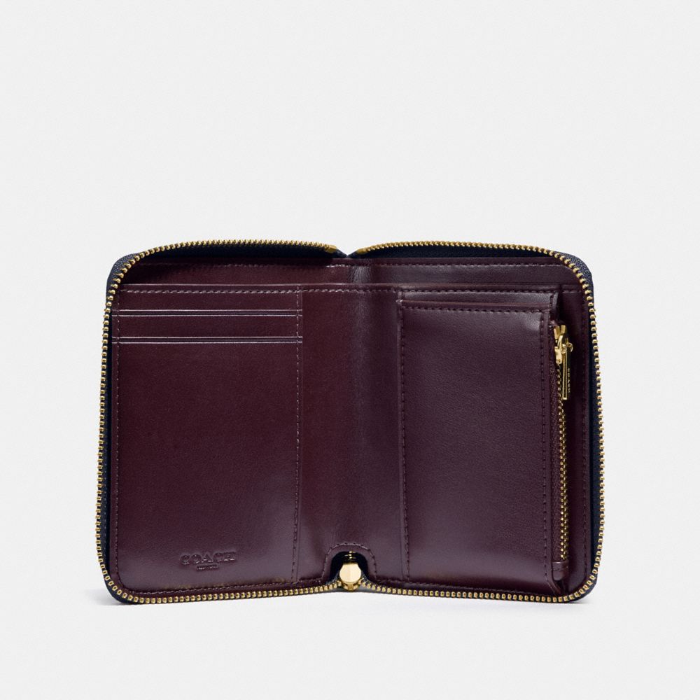 Crocodile-embossed leather | Two credit card slots| Bill compartment| Inside zip coin pocket| Zip-around closure| 4 1/2" (L) x 3 3/4" (H) x 3/4" (W)