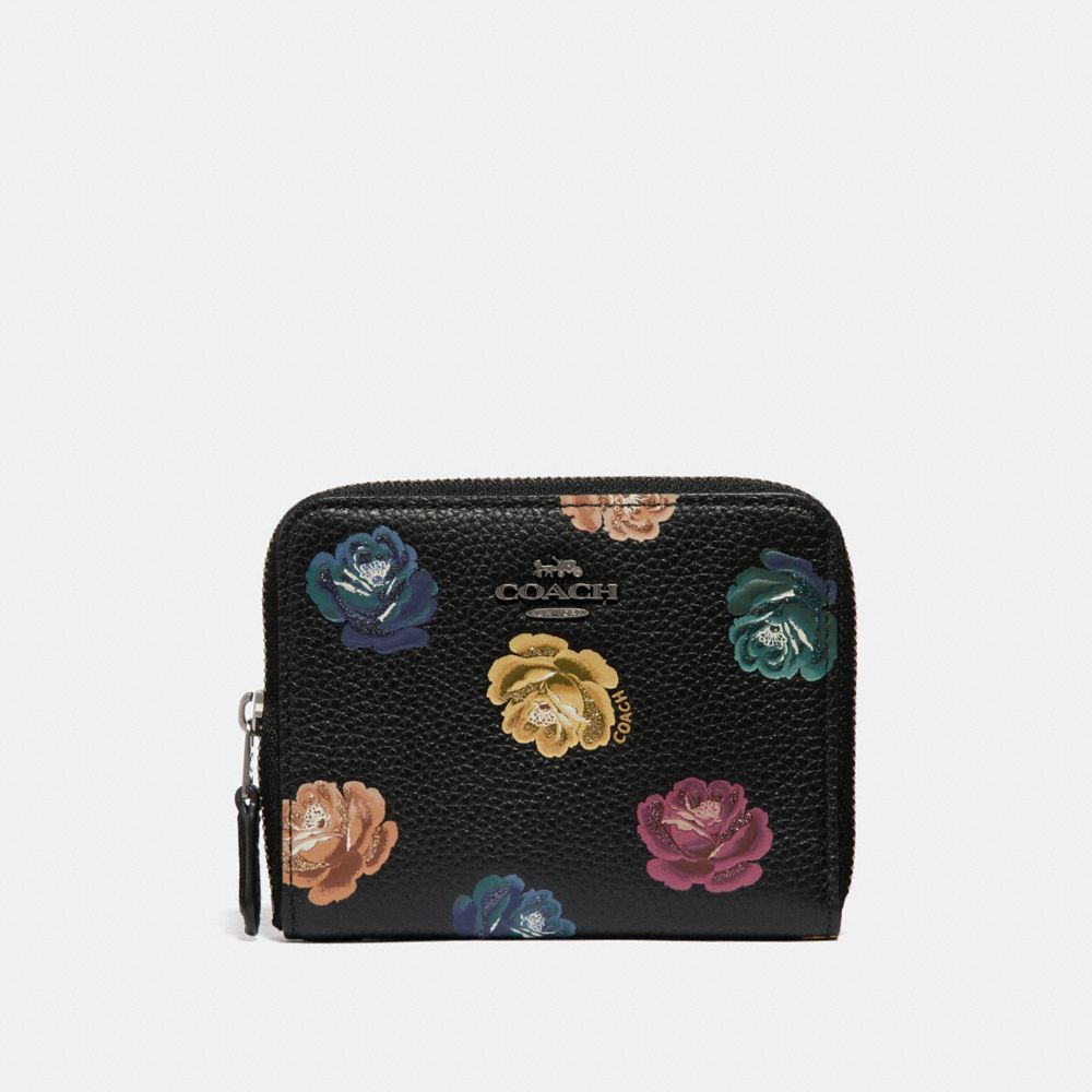 SMALL ZIP AROUND WALLET WITH RAINBOW ROSE PRINT