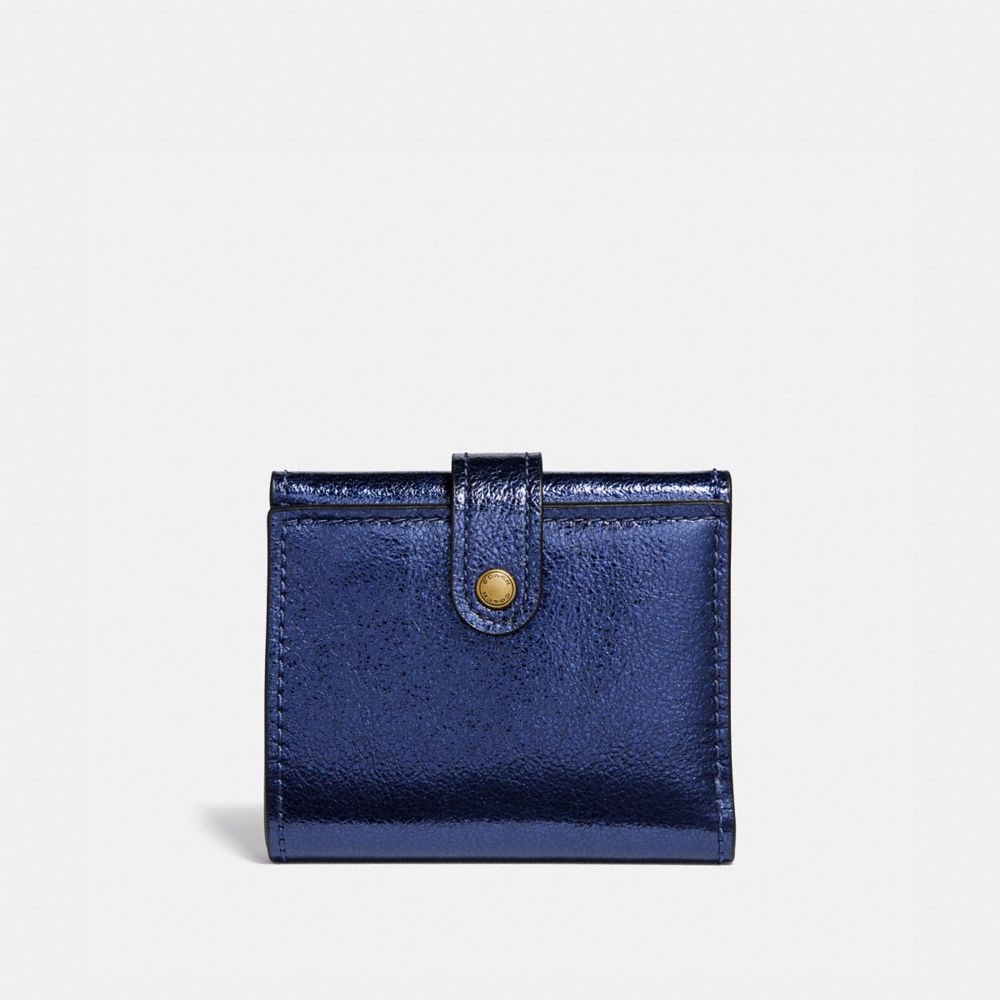 Metallic crinkle leather| Six credit card slots | Full-length bill compartment| Zip coin pocket| Snap closure| 4 1/4" (L) x 3 1/2" (H)