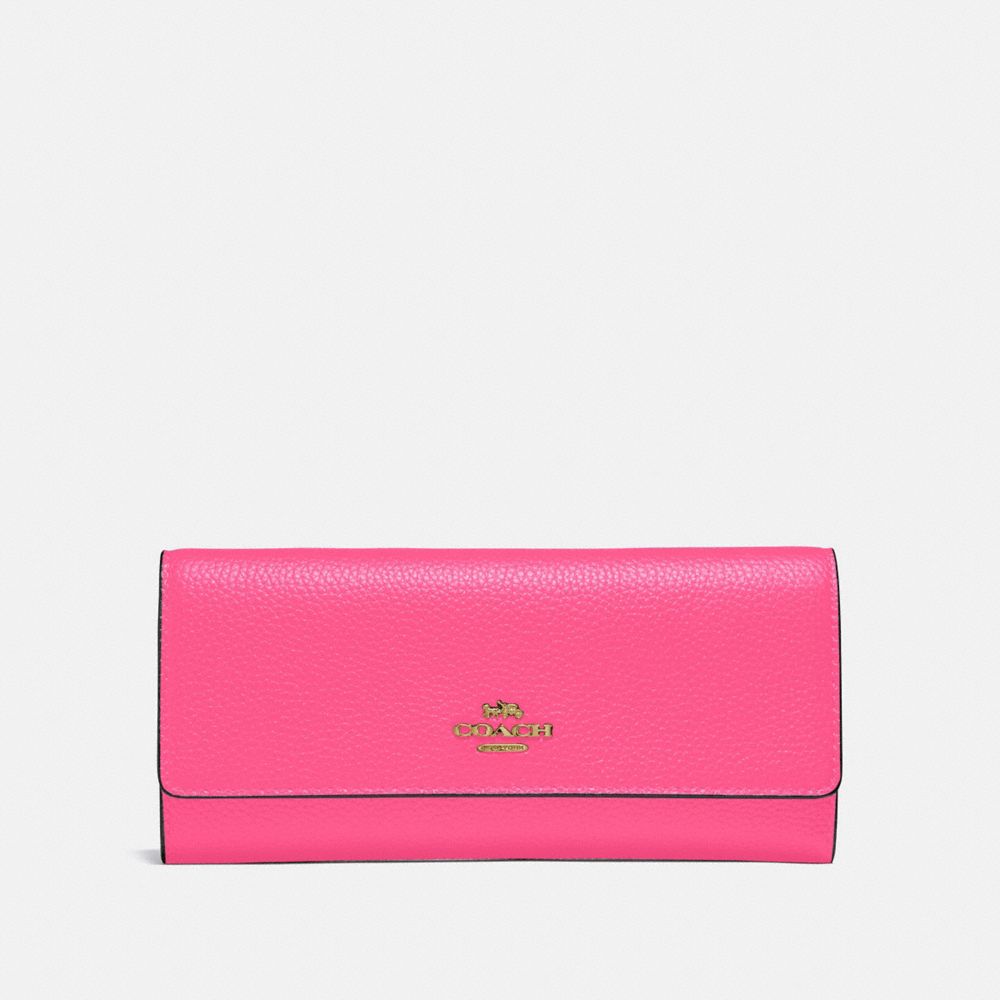 Polished pebble leather| Eight credit card slots| Full-length bill compartments| Snap closure| Outside zip coin pocket| 7 3/4" (L) x 4" (H)