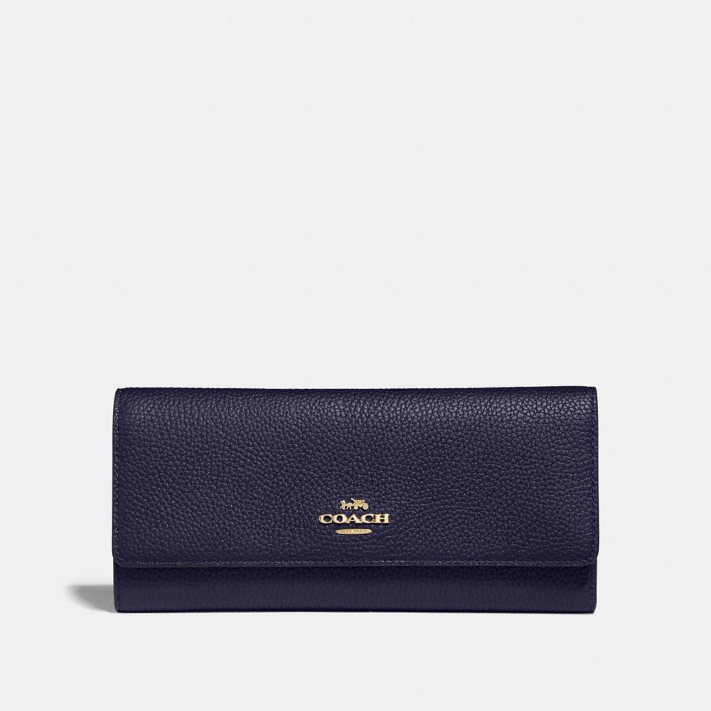 Polished pebble leather| Eight credit card slots| Full-length bill compartments| Snap closure| Outside zip coin pocket| 7 3/4" (L) x 4" (H)