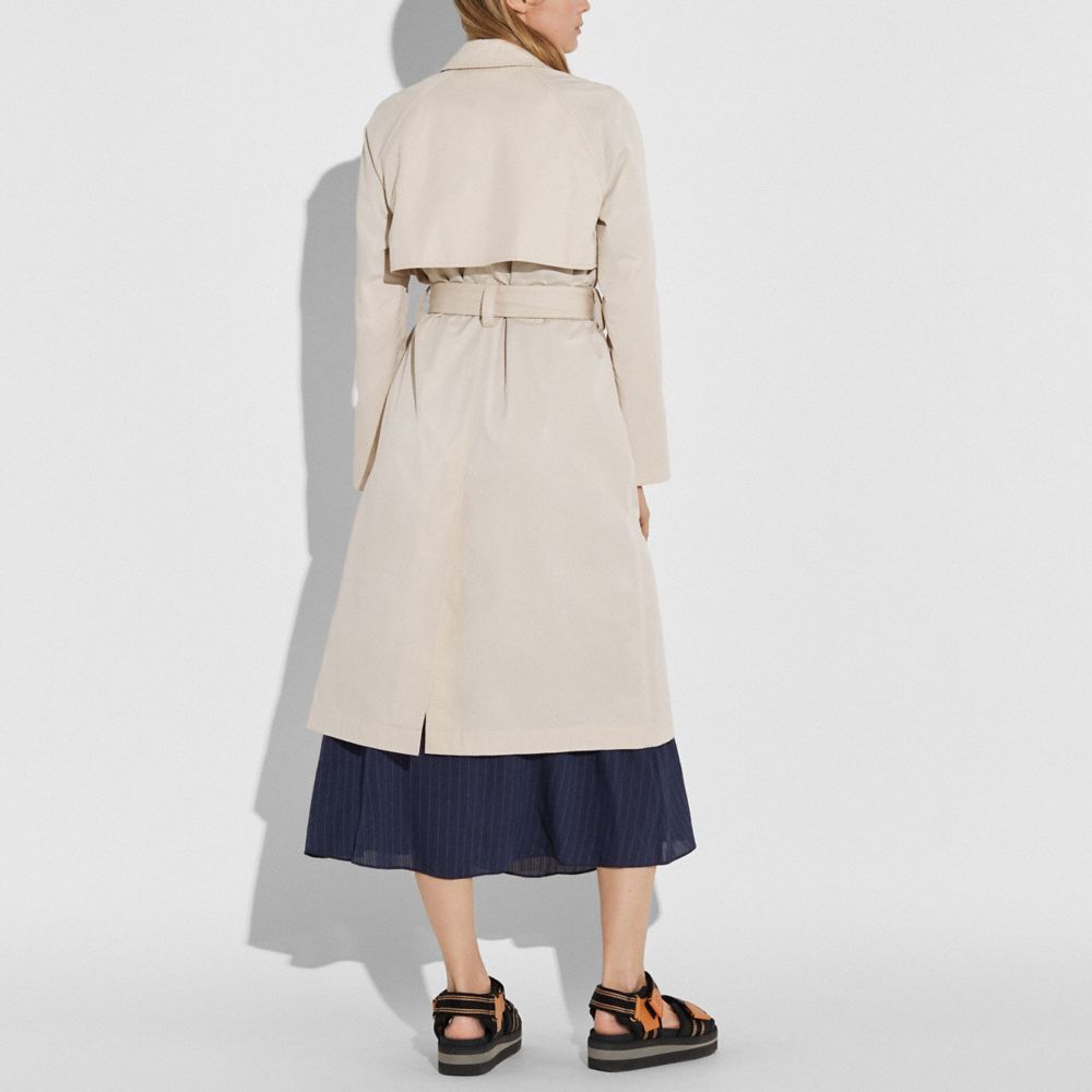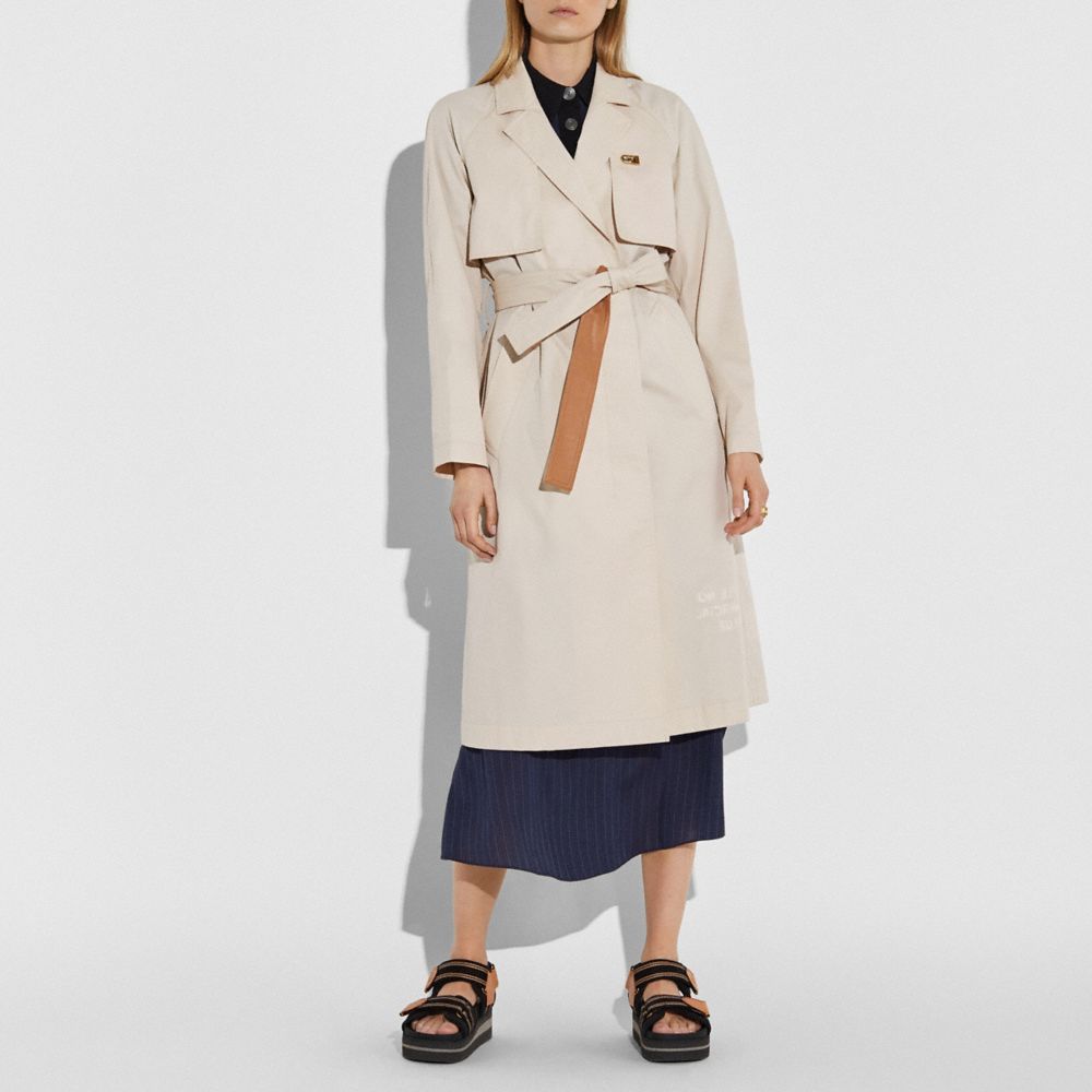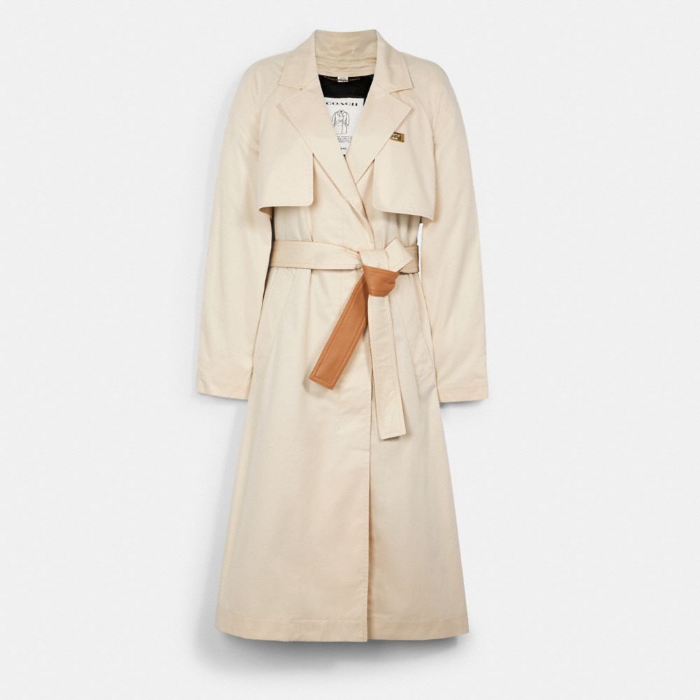 55% cotton, 45% lyocell| Lining: 100% polyester| Leather details| Button closure| Slip pockets| Self-tie belt| Length: 45 1/4"| Model is 5'10" (178cm), chest 31" (79cm), waist 24" (61cm), hips 35" (89cm) and wears a size 2