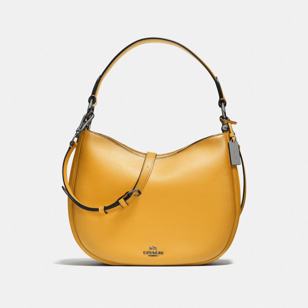Burnished glovetanned leather| Inside zip, cell phone and multifunction pockets| Zip-top closure, leather lining| Handle with 8" drop| Detachable strap with 21" drop for shoulder or crossbody wear| 11 1/4" (L) x 9 1/2" (H) x 3 1/4" (W)