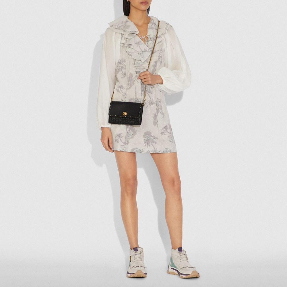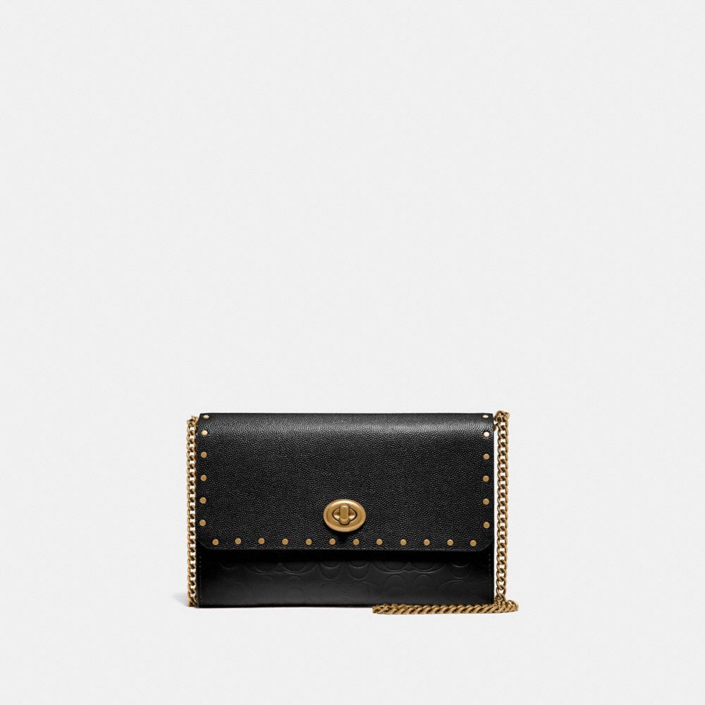 MARLOW TURNLOCK CHAIN CROSSBODY IN SIGNATURE LEATHER WITH RIVETS