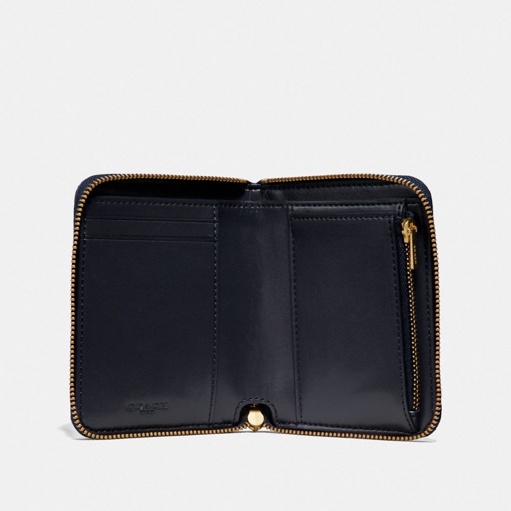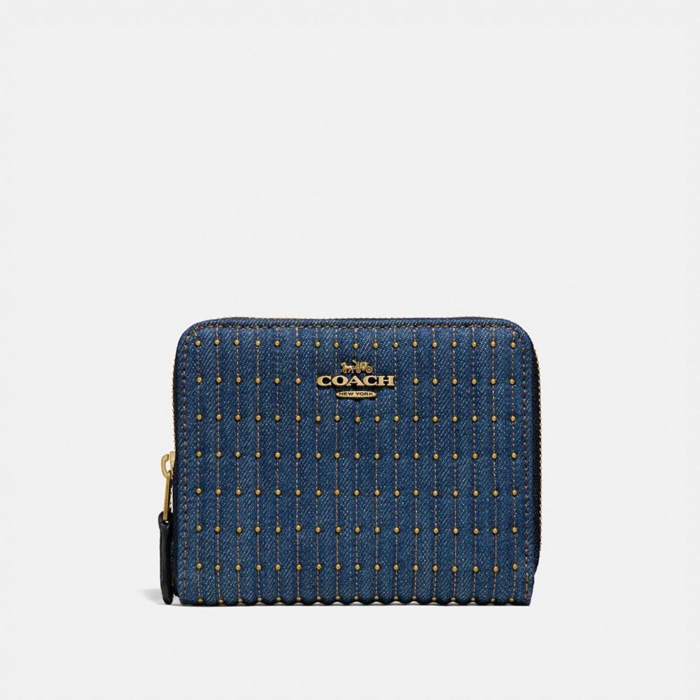 SMALL ZIP AROUND WALLET WITH QUILTING AND RIVETS