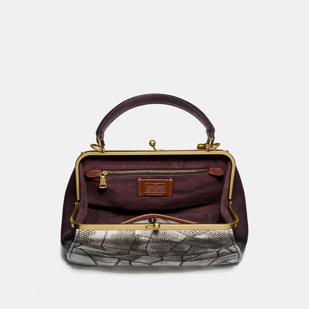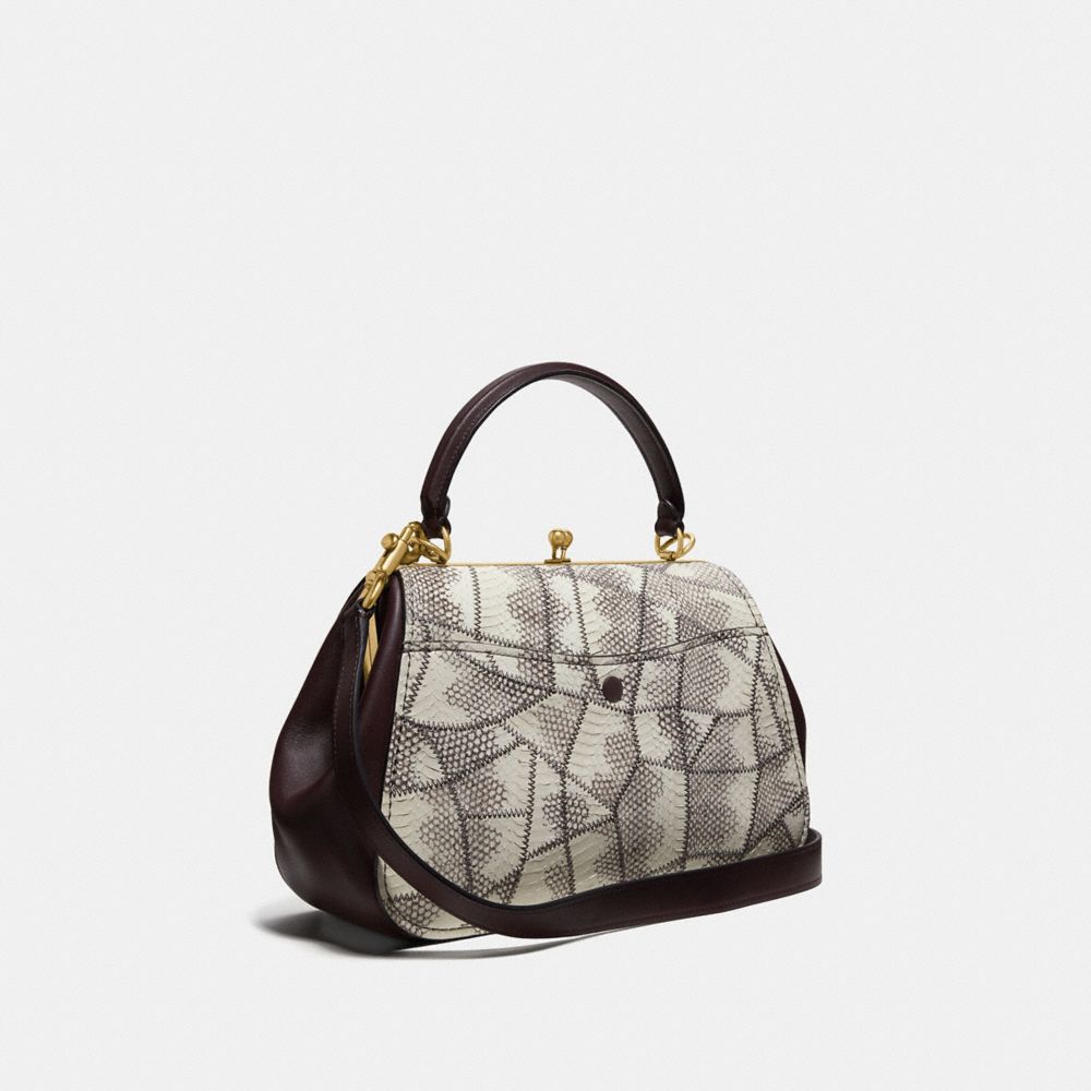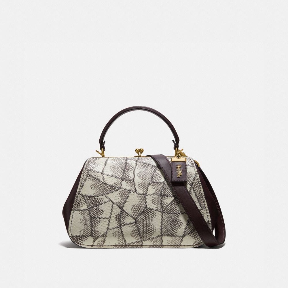 Genuine snakeskin and glovetanned leather| Inside zip and multifunction pockets| Kisslock closure, leather lining| Handle with 4" drop| Outside slip pocket| Detachable strap with 22 1/2" drop for shoulder or crossbody wear| Instantly change the look of your bag with an interchangeable strap.| 11 1/2" (L) x 7 1/2" (H) x 4 1/4" (W)| Also available in other sizes