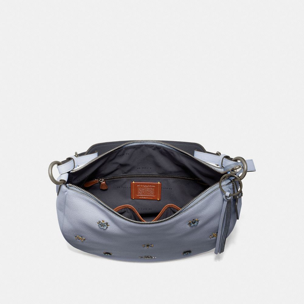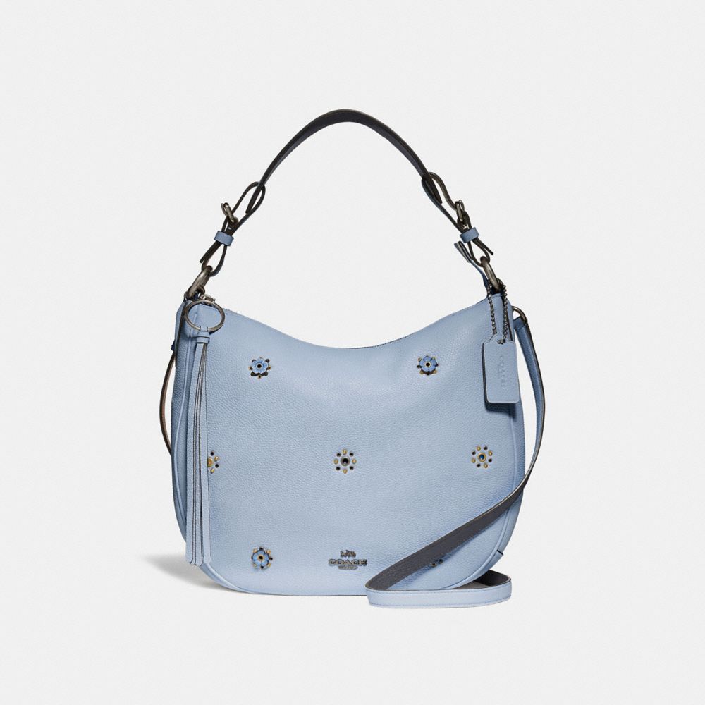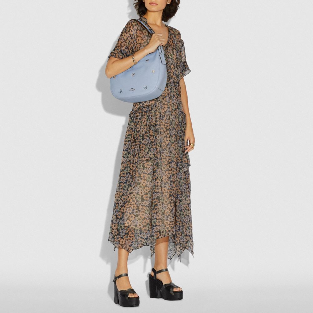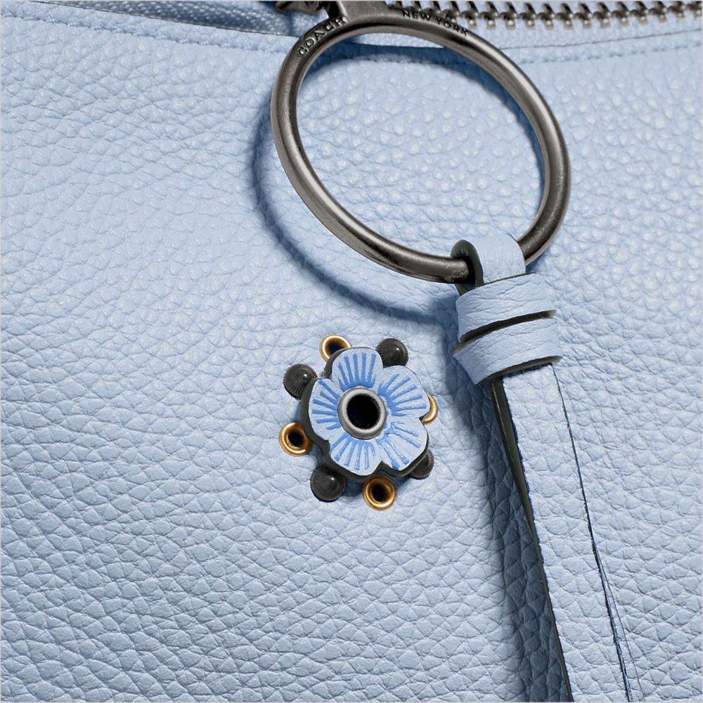 Polished pebble leather| Inside zip, cell phone and multifunction pockets| Zip-top closure, fabric lining| Handle with 7 3/4" drop| Outside zip pocket| Detachable strap with 22" drop for shoulder or crossbody wear| Instantly change the look of your bag with an interchangeable strap.| 12 1/2" (L) x 10 1/2" (H) x 3 1/2" (W)