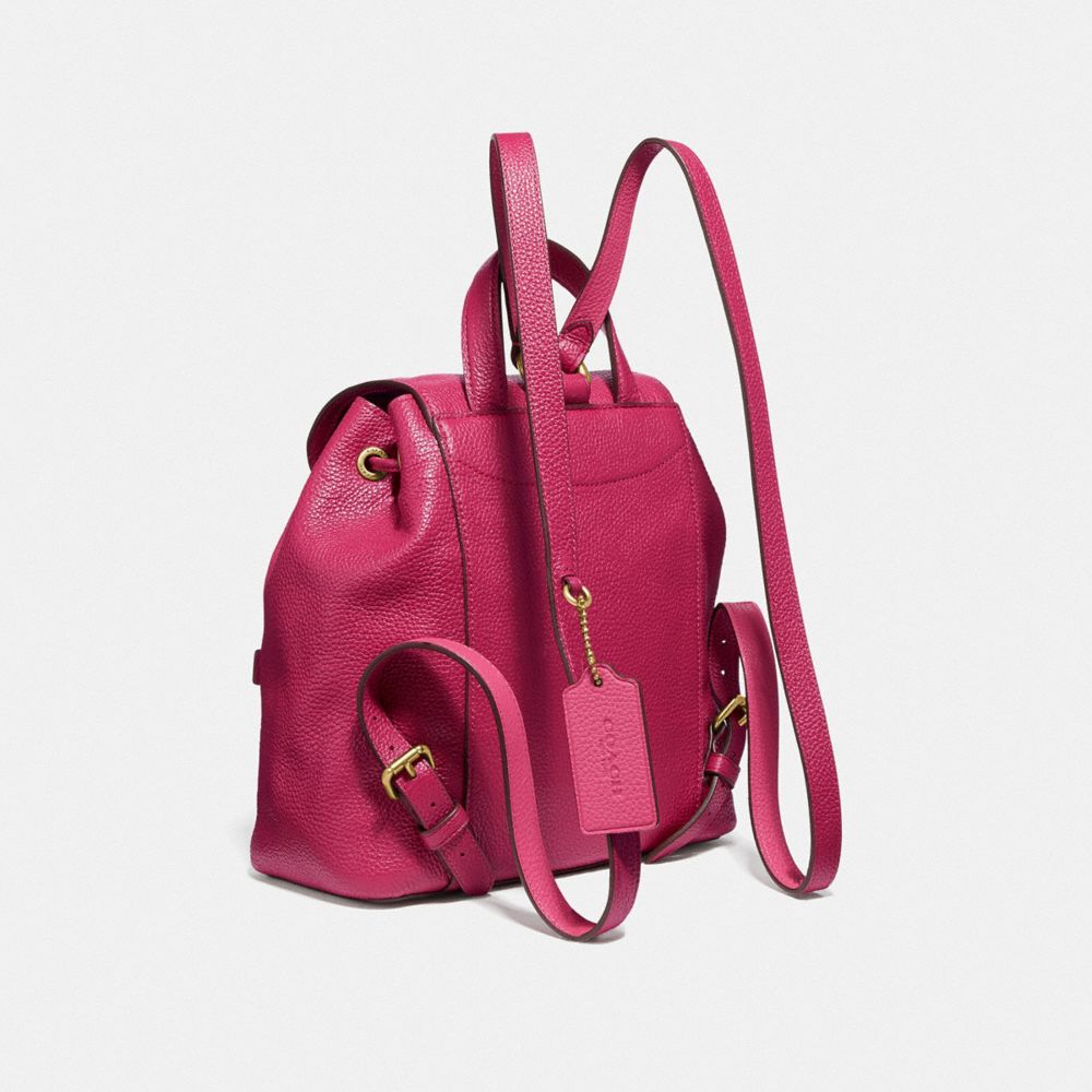 Polished pebble leather| Inside zip and multifunction pockets| Drawstring and snap closures, fabric lining| Top handle with 3" drop| Outside zip pocket| Adjustable shoulder straps| 8 1/4" (L) x 9 3/4" (H) x 4 1/4" (W)